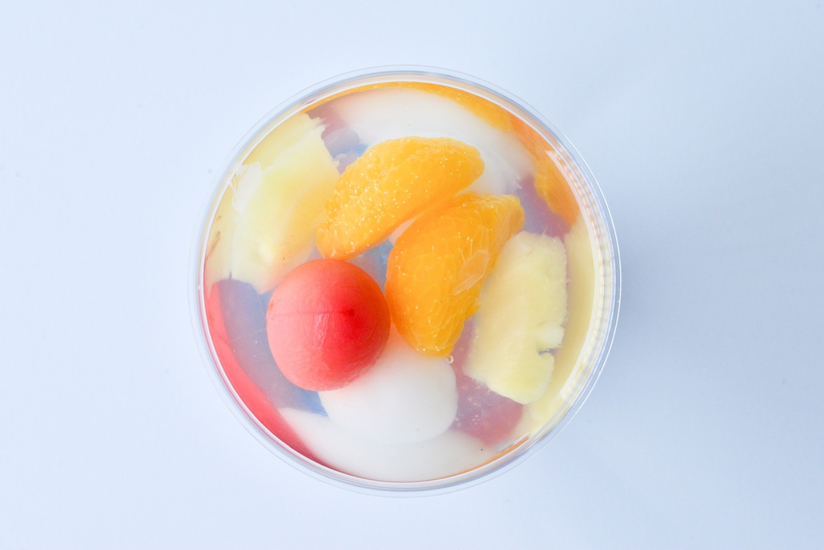 さっぱりとしたレモンゼリーに、缶詰のようにシロップ漬けされた甘~いみかんがマッチします。パインもさくらんぼも、みかん同様シロップ漬けのあまあま味です。白くて丸い、白玉のような見た目のヨーグルトわらびは、白玉より弾力は少なく粘度の高い食感で、ほのかにヨーグルト味を感じられました。