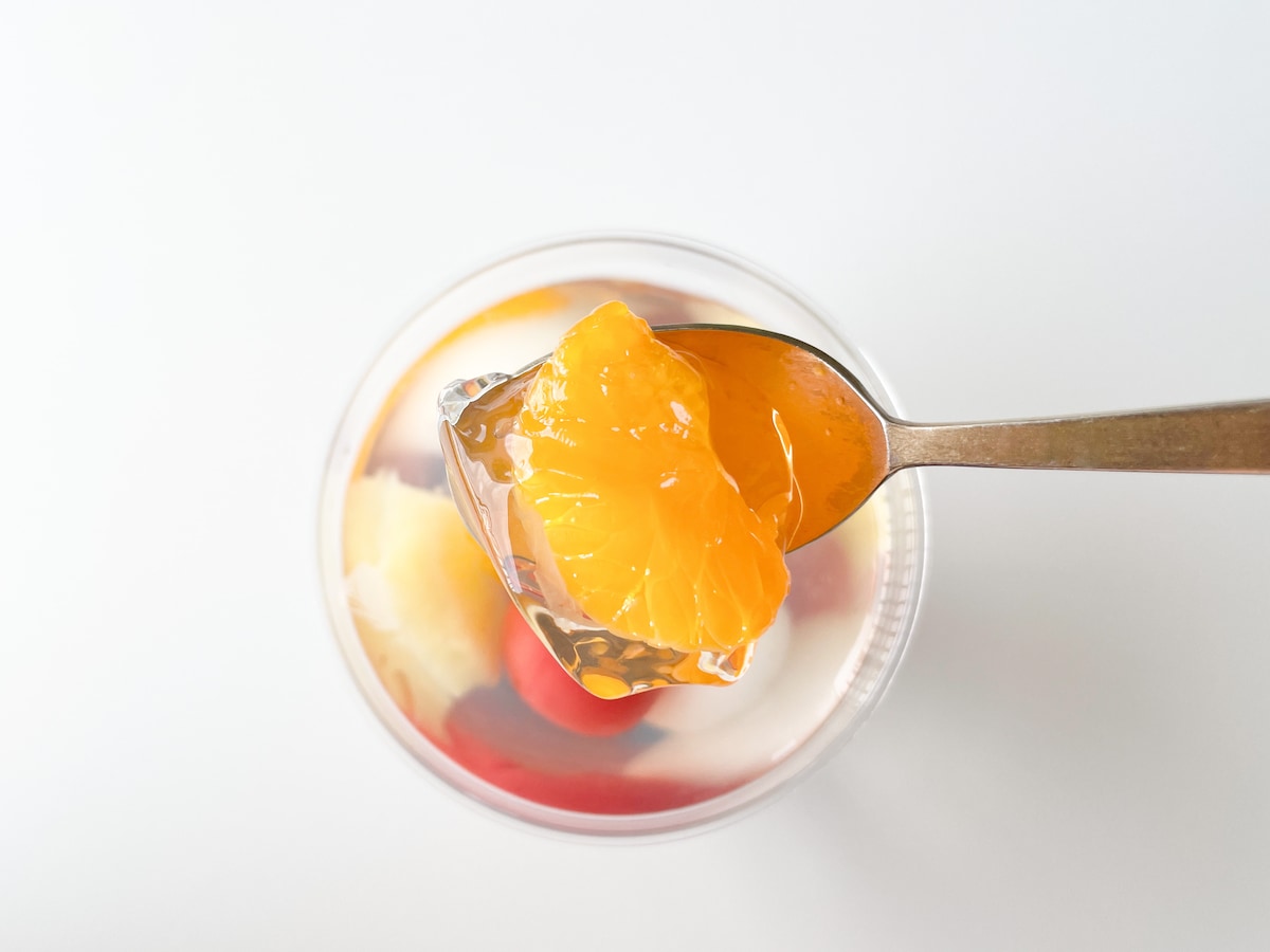 それではいただきます♪まずはレモンゼリーをみかんと一緒に。