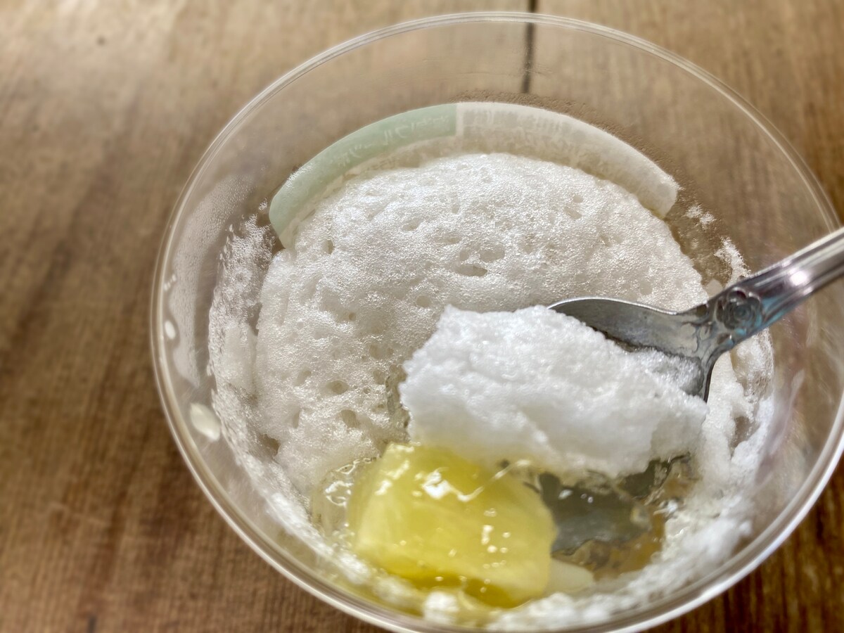 筆者は勇気がなくてできませんでしたが、泡と下のゼリーを軽く混ぜてから食べたら、よりフルーツポンチの再現度が高くなるように感じました。