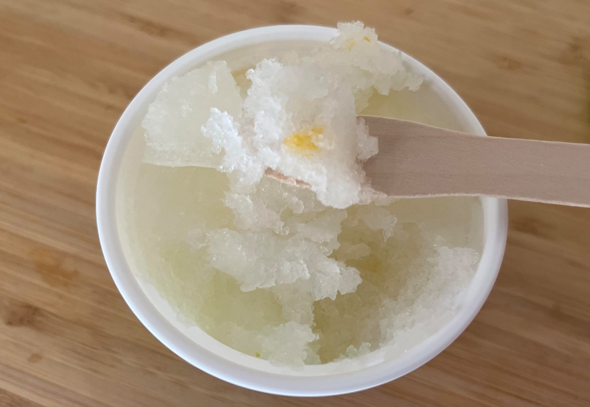 サクサク食感のかき氷の中には、ゆずピールも入っており、食感のアクセントになります。