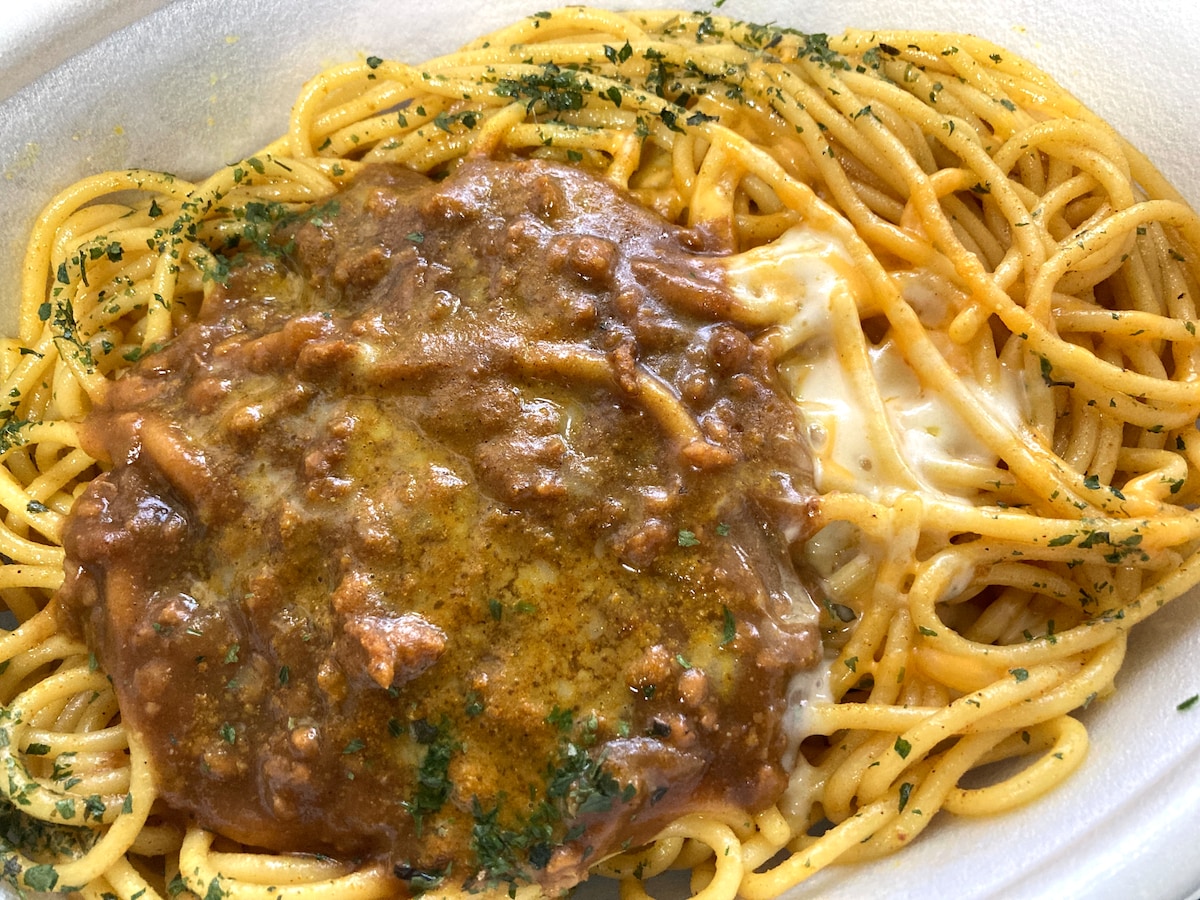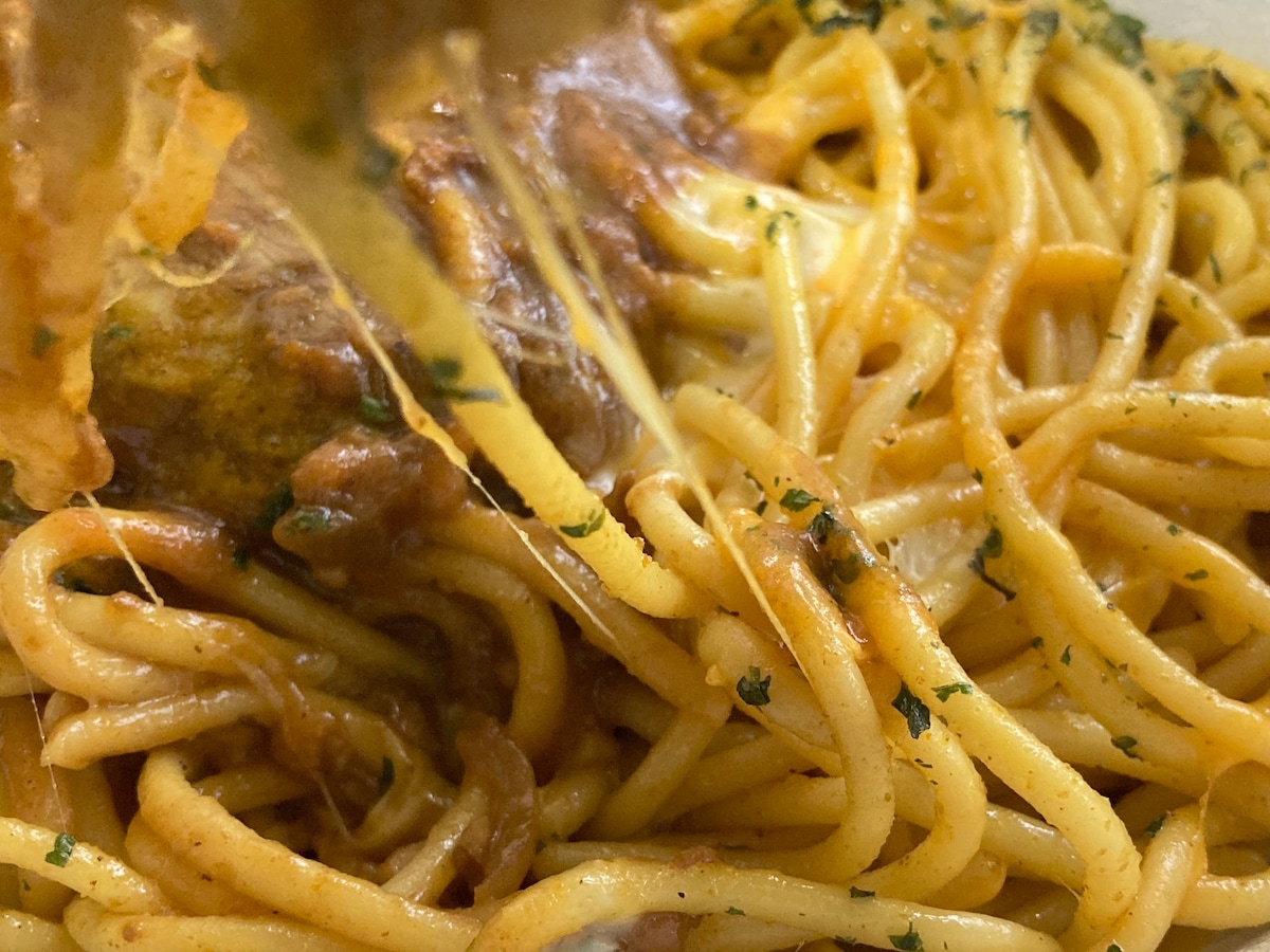 「特盛 太麺!チーズのせカレースパゲティ」
