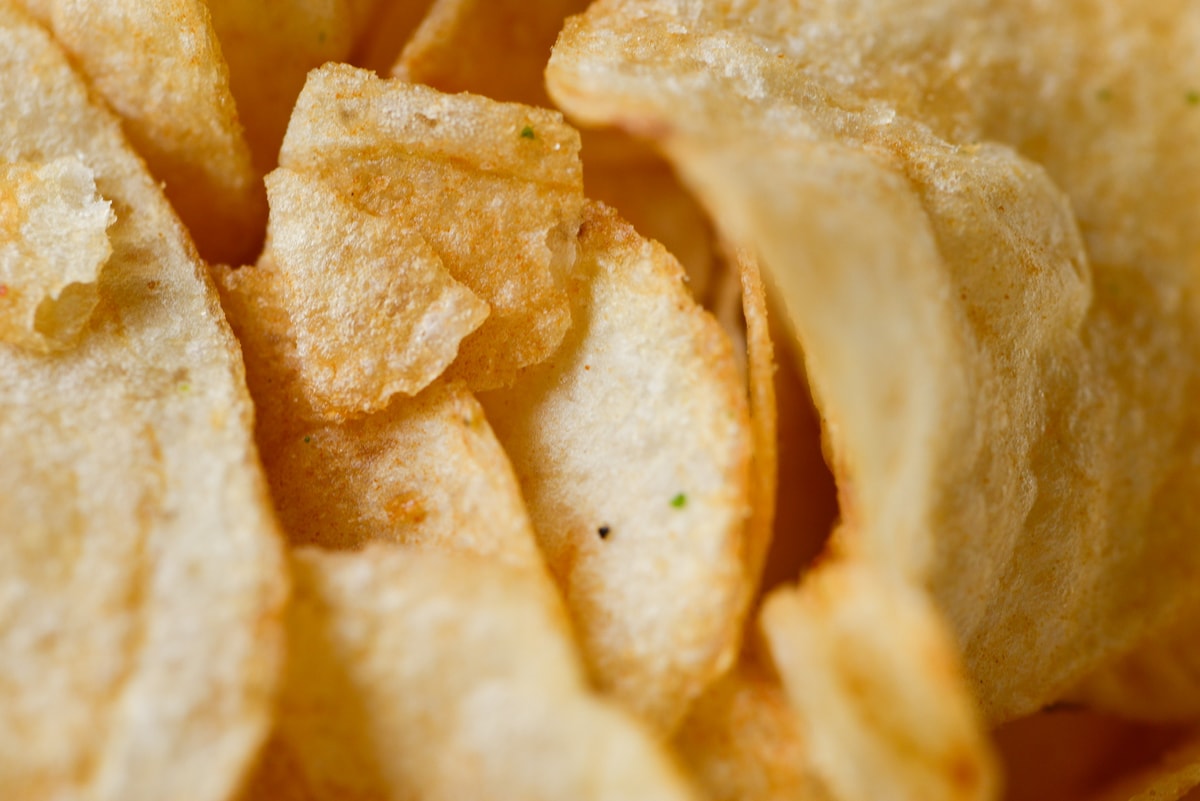 一見普通のポテトチップスのようですが、よく見るとところどころに少し黒やグリーンのスパイス?のようなものがかかっています。