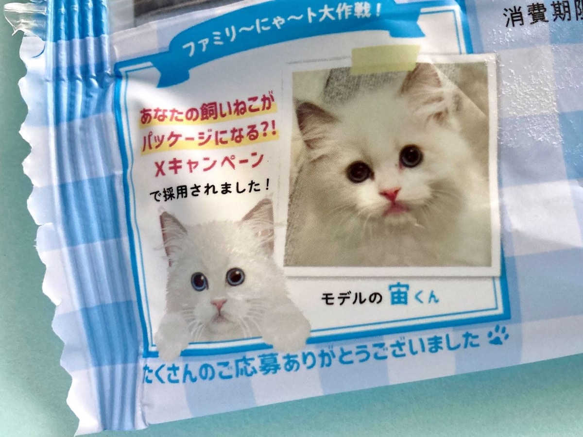 裏を見てみると、モデルとなった猫ちゃんと元となった写真が紹介されていました。うるっとした瞳がとってもキュート♡