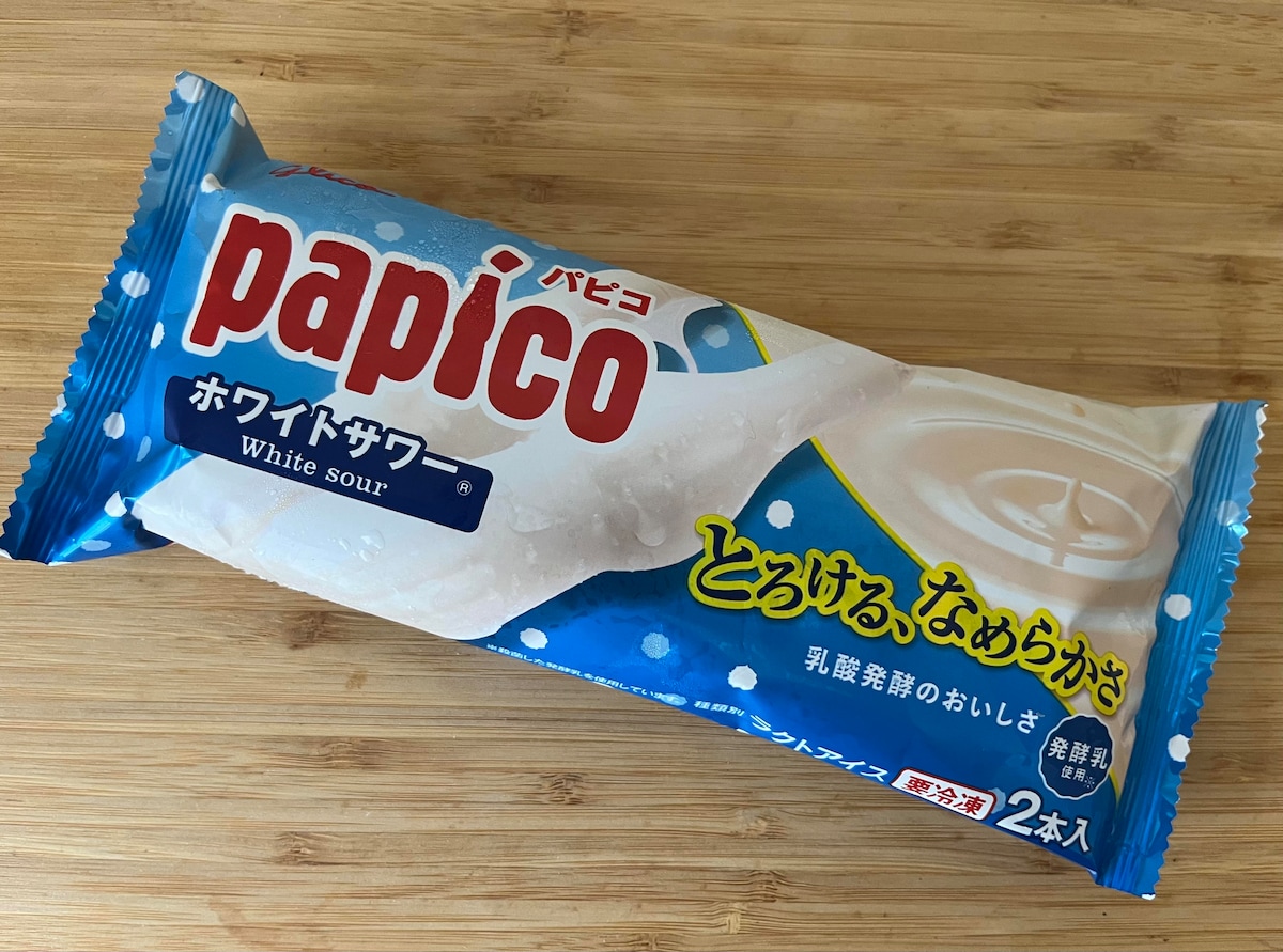 実際に食べてみました。パピコの特徴である濃厚な味わいと独自の食感に、さっぱりとしたホワイトサワーの風味が融合していてとても美味しい!