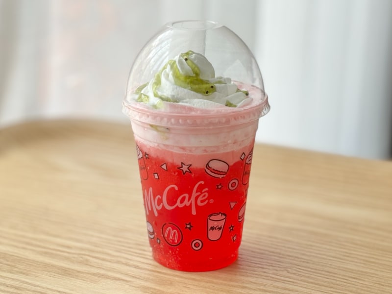 マクドナルドは7月31日(水)、夏限定ドリンクの「すいかフラッペ」(単品490円~)と「ゴールデンパインフラッペ」(単品490円~)の発売を開始しました。今回は2商品のうち、「すいかフラッペ」についてピックアップします。