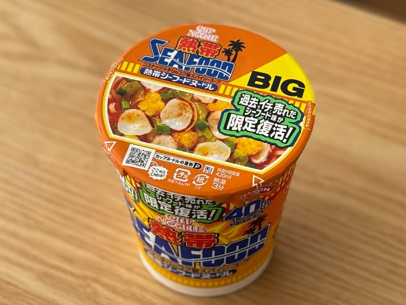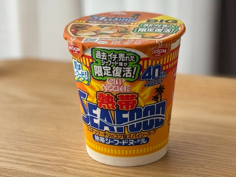 「日清カップヌードル 熱帯シーフードビッグ」(税込271円)が7月30日(火)、セブン-イレブンで順次発売されました。カップヌードルの定番「シーフードヌードル」の発売40周年を記念し、過去イチ売れたというシーフード味を限定復活させた商品です。