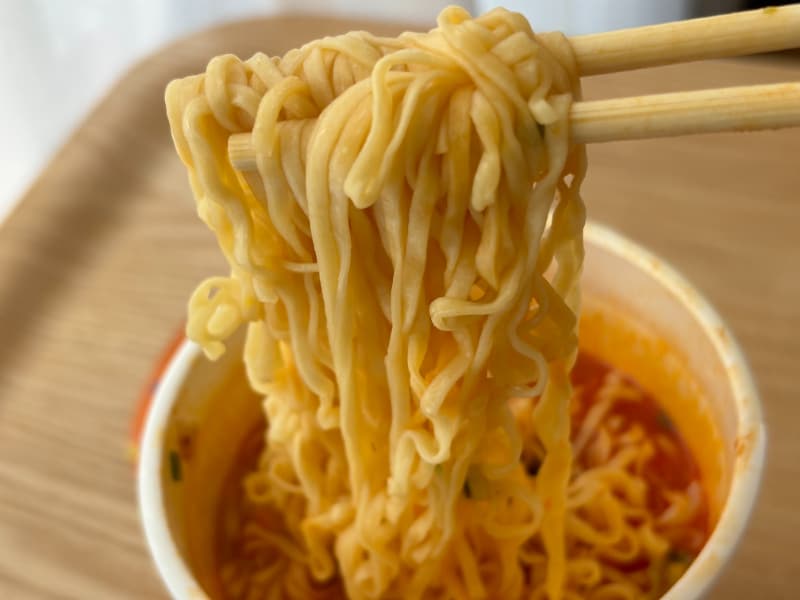 ココナッツが加わっているからか、意外にもそれほど辛さはなく、カップに表示された「辛さレベル」も5段階中、最も辛くない「1」。万人受けしやすいピリ辛味です。