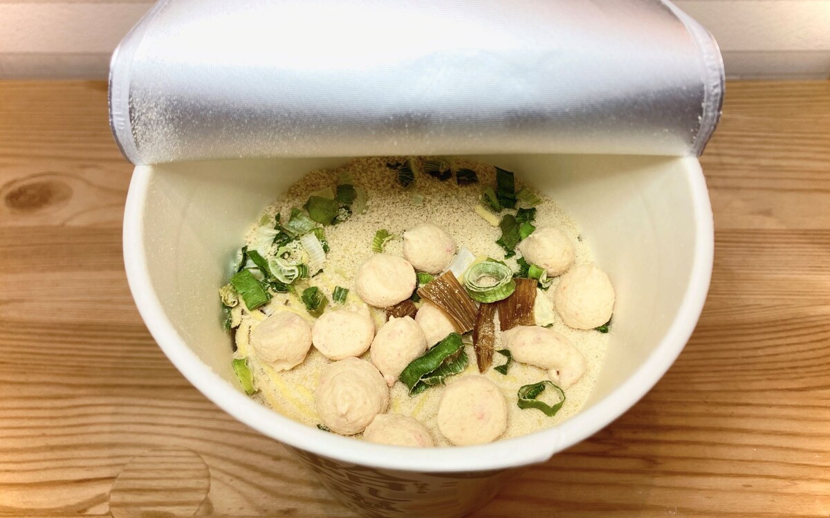 蓋をあけてみると、えび入り団子(ねりたま)がコロコロとたくさん入っています。