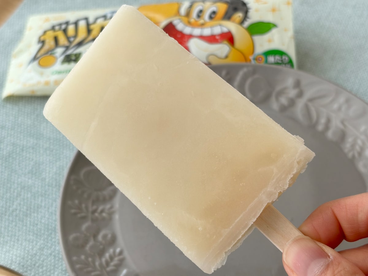 梨の再現度がすごいっ!シャリシリ&ガリガリが同時に味わえるガリガリ君特有の食感はありつつも、食べた感じが梨すぎて、ちょっと脳がバグります(笑)