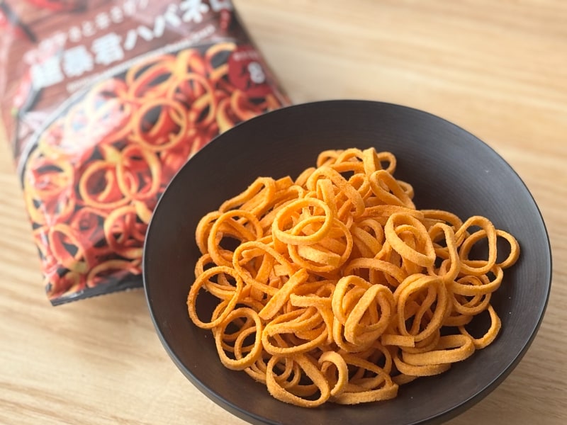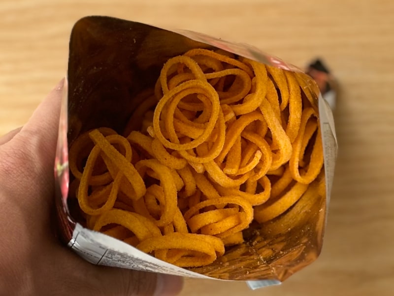 1個つまんで食べてみると、舌がピリリとする辛さです。一方で、スナック部分の旨みもしっかりとあるので、単に辛いだけではないのがうれしい……!