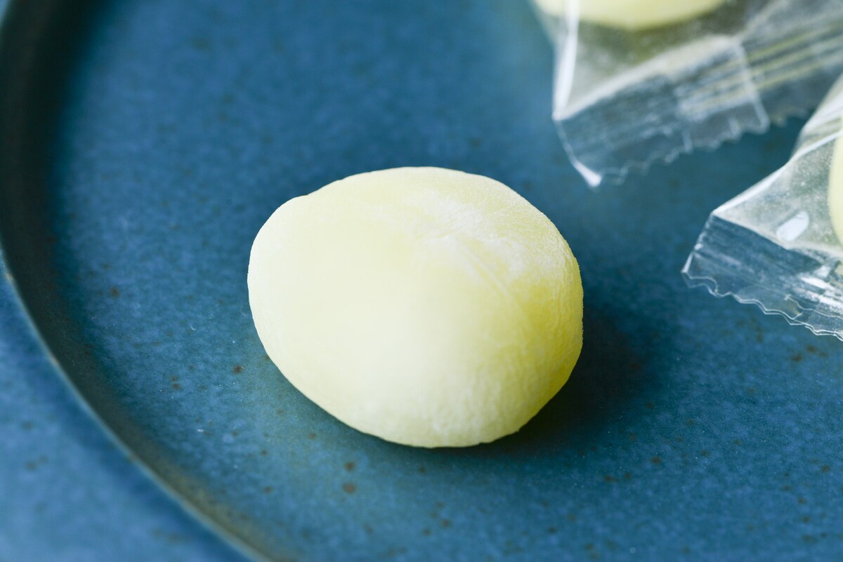 さらに個包装を開けてみます。やさしい黄色のふわふわのレモン餅です。