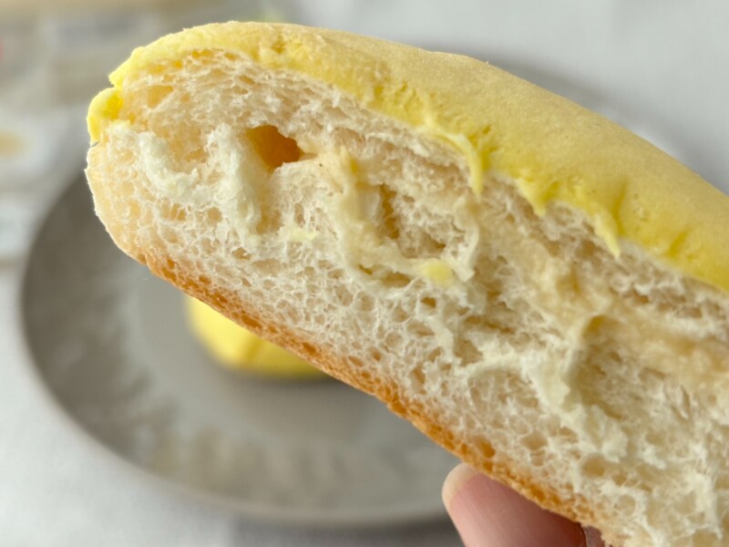 実際に食べてみると、もちっと食感の黄色い生地からも、中のクリームからもバナナの甘さを存分に感じられます。これは子どもも、大人も、みんな好きな味……間違いない。