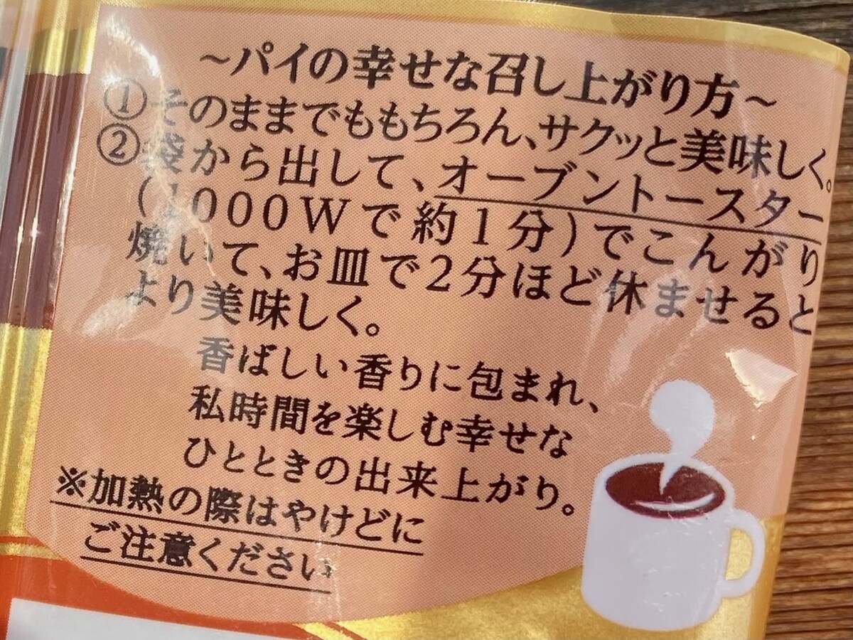 ふと裏面を見ていると、「パイの幸せな召し上がり方」が載っていました。