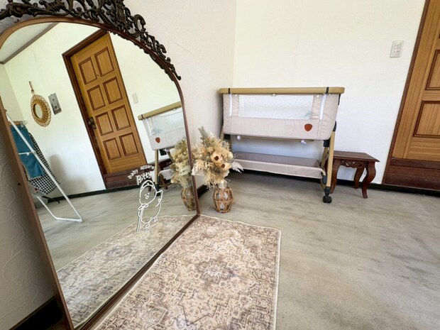アンティークミラーや照明がアクセントになっていて、まるで絵本の中に迷い込んだようなかわいさ。
