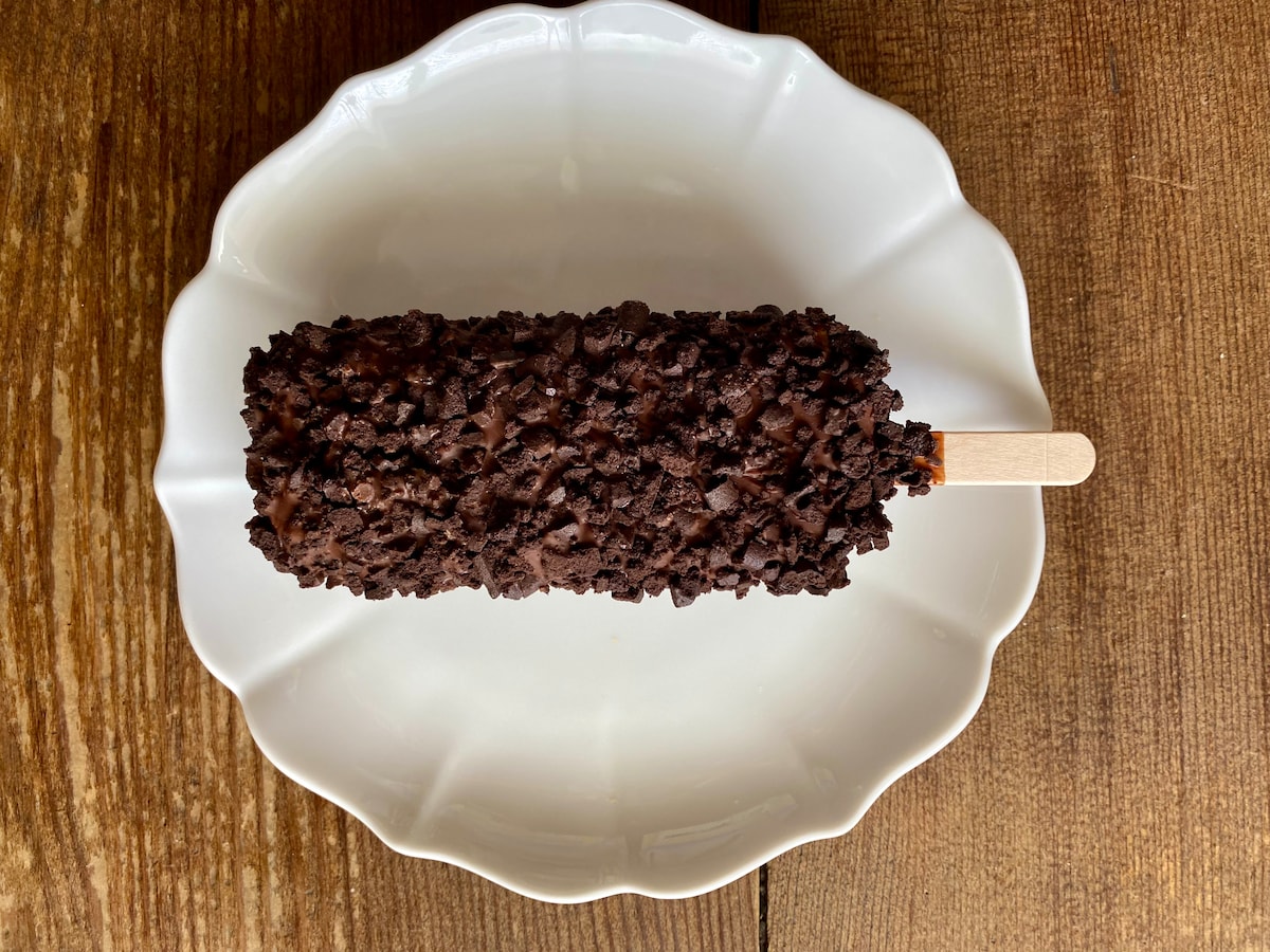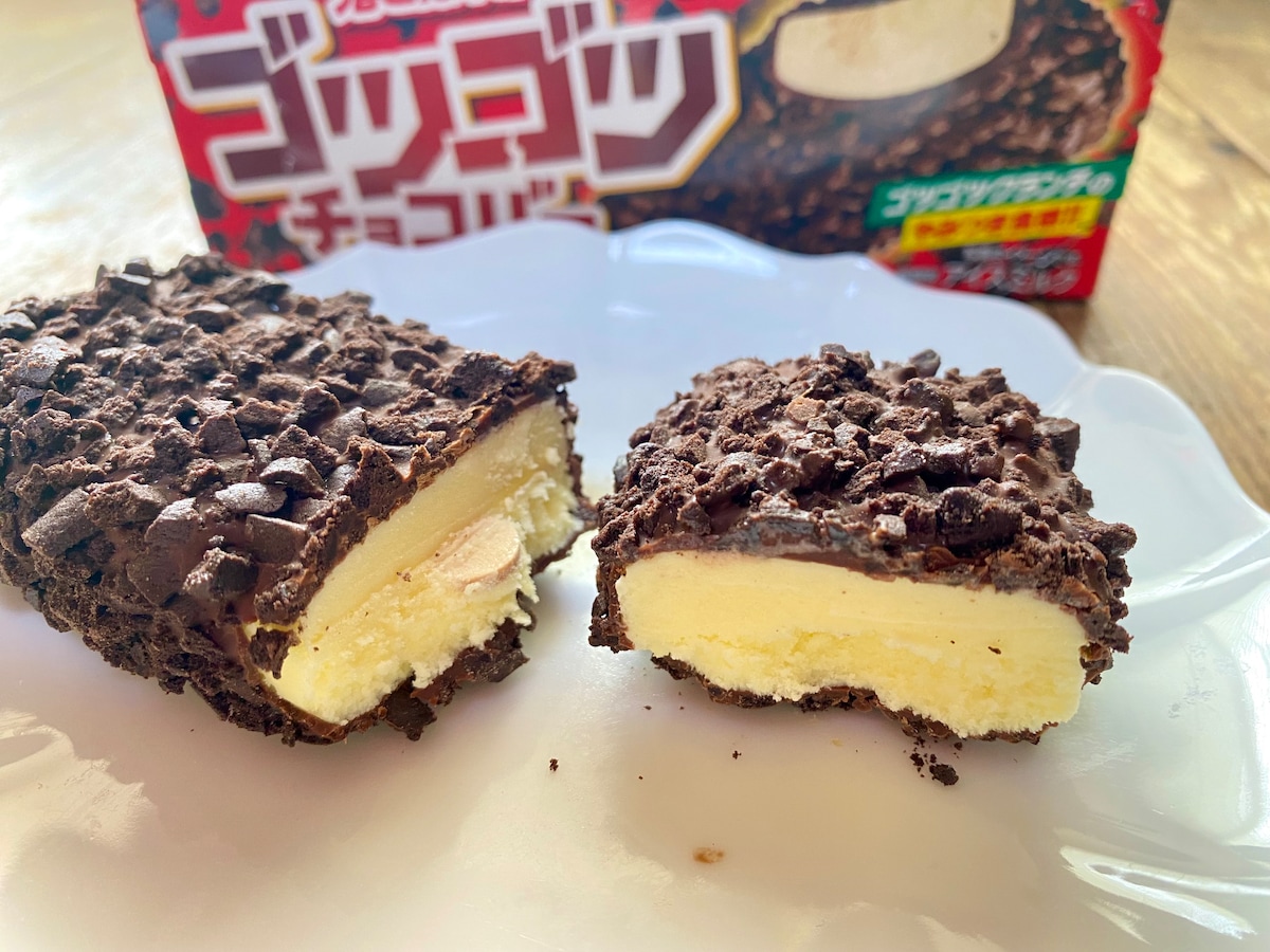 一般的なチョコアイスと変わらなさそうですが、切っている感覚でチョコの分厚さにやや驚き。
