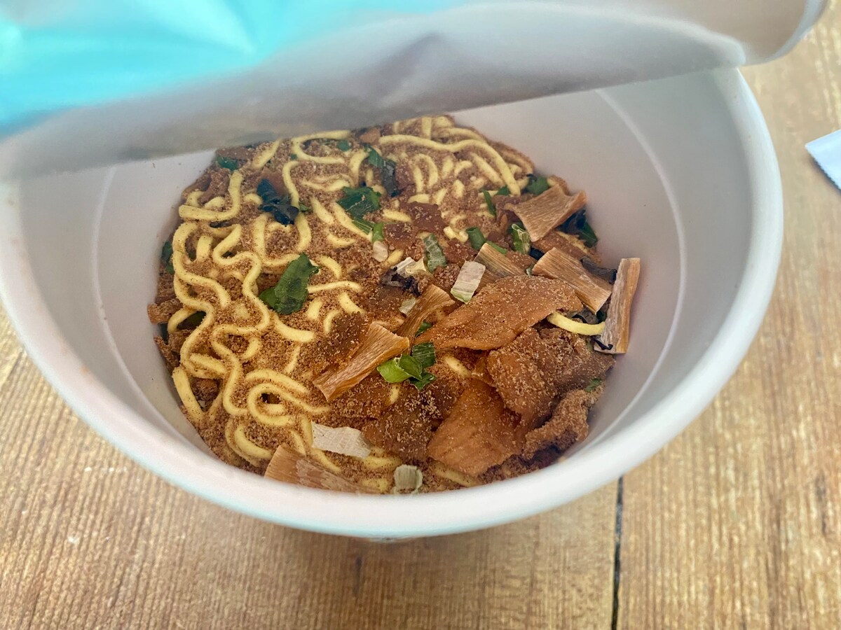 早速フタを外してラーメンの中身を見てみましょう。開封後がこちら。