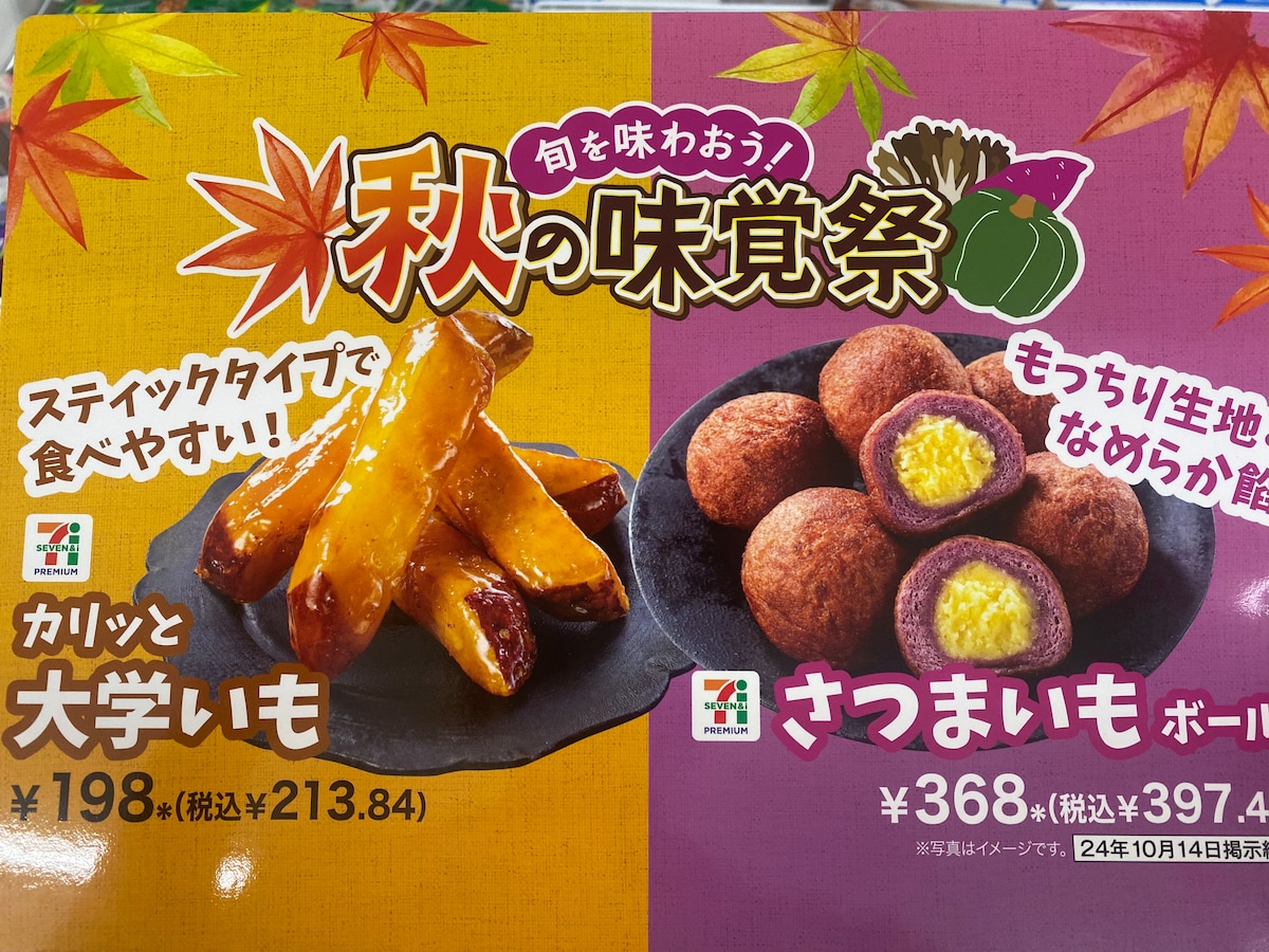 セブン-イレブンでは「秋の味覚祭」が開催中で、秋の味覚が目白押し!冷凍コーナーからは「さつまいもボール」と「カリっと大学いも」が登場しています。