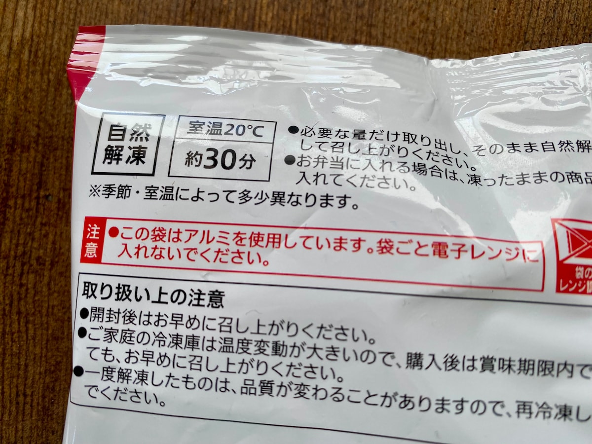 「カリっと大学いも」は冷凍商品のため、解凍方法を見ていたら裏側にありました!