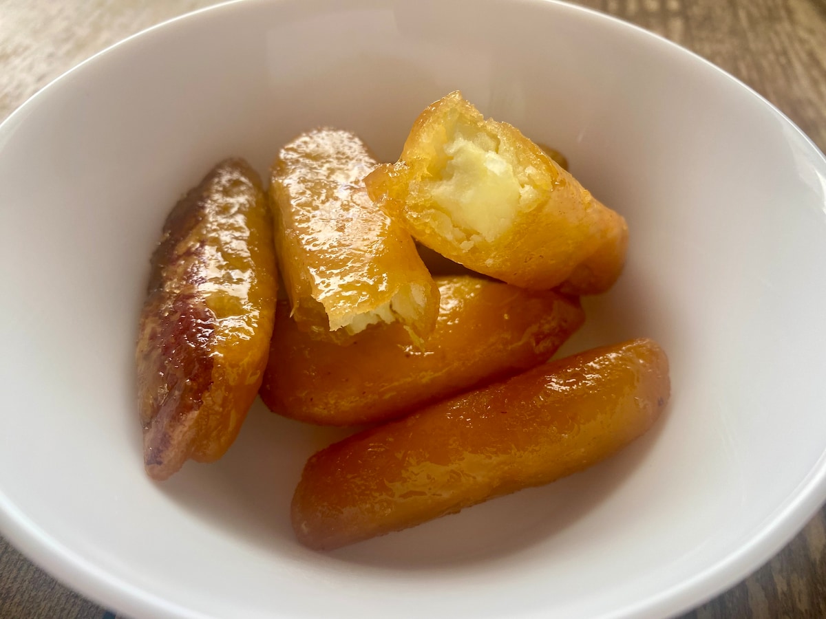 ホクホクしたさつまいもに、カリッとした飴がコーティングされています。