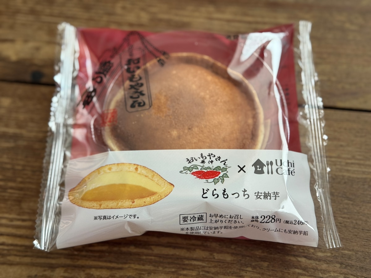 ローソンのスイーツブランド「Uchi Café」と、創業明治9年の甘藷(サツマイモ)問屋『川小商店』が経営するサツマイモ菓子専門店「おいもやさん興伸」がコラボした商品です。「スイートポテト風ロールケーキ」「おいもんぶらんパンケーキ」「どらもっち 安納芋」が登場しており、この記事ではどらもっちを実食レビューします。