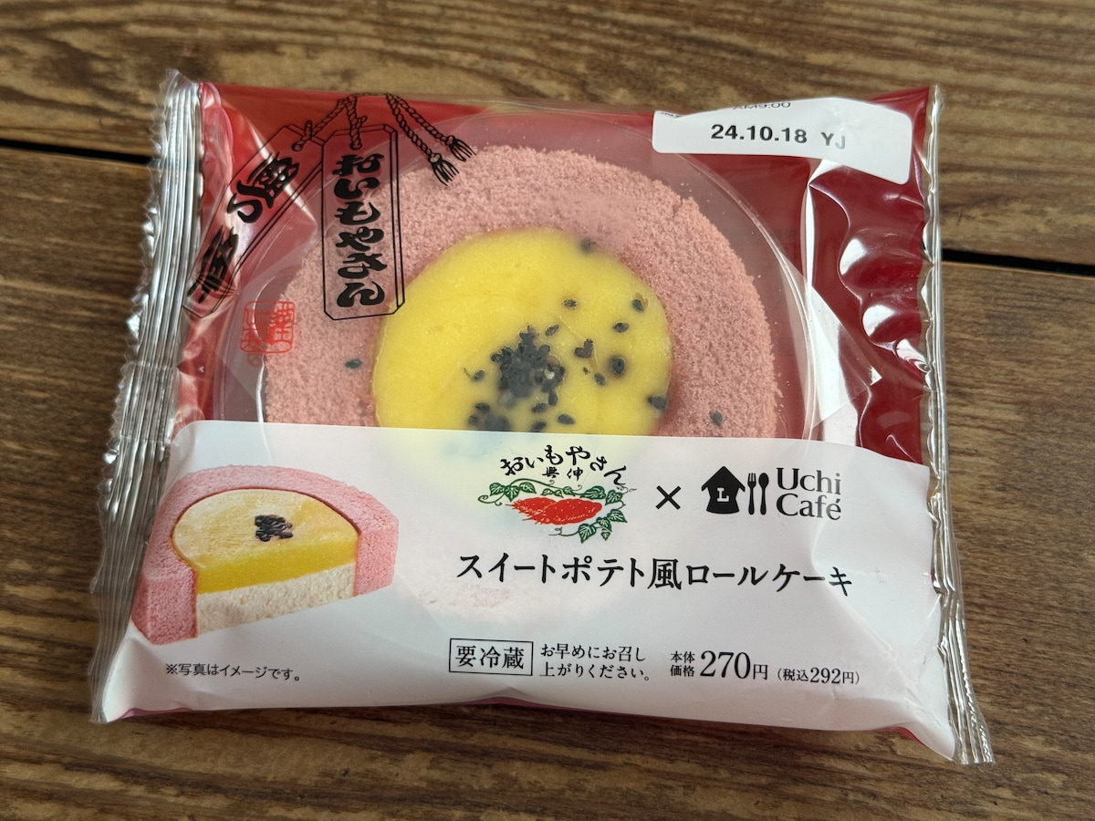 ローソンのスイーツブランド「Uchi Café」と、創業明治9年の甘藷(サツマイモ)問屋『川小商店』が経営するサツマイモ菓子専門店「おいもやさん興伸」がコラボした商品です。「スイートポテト風ロールケーキ」「おいもんぶらんパンケーキ」「どらもっち 安納芋」が登場しており、この記事ではロールケーキを実食レビューします。
