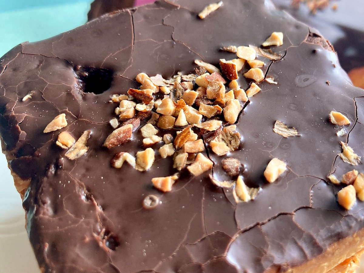 上部にはチョコレートコーティングとクラッシュアーモンドが。チョコはやや割れてしまっていますが、アーモンドはパッケージ写真よりも多く乗せられているようで、ちょっと嬉しい気持ち(笑)。