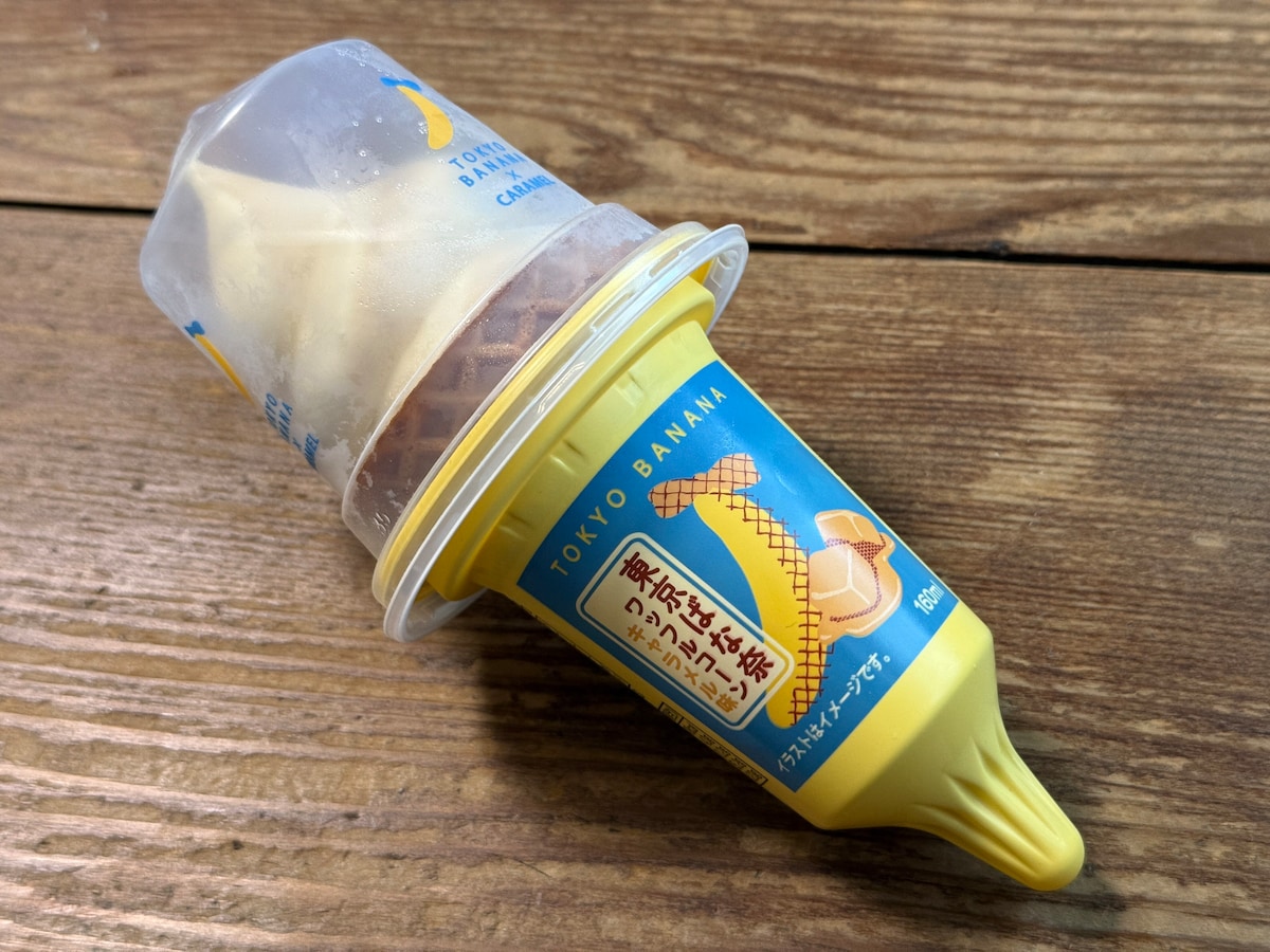 2024年11月19日(火)より、全国のファミリーマート限定で販売中の「ワッフルコーン東京ばな奈キャラメル味」。