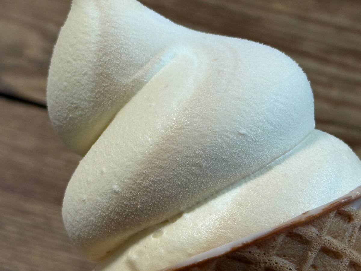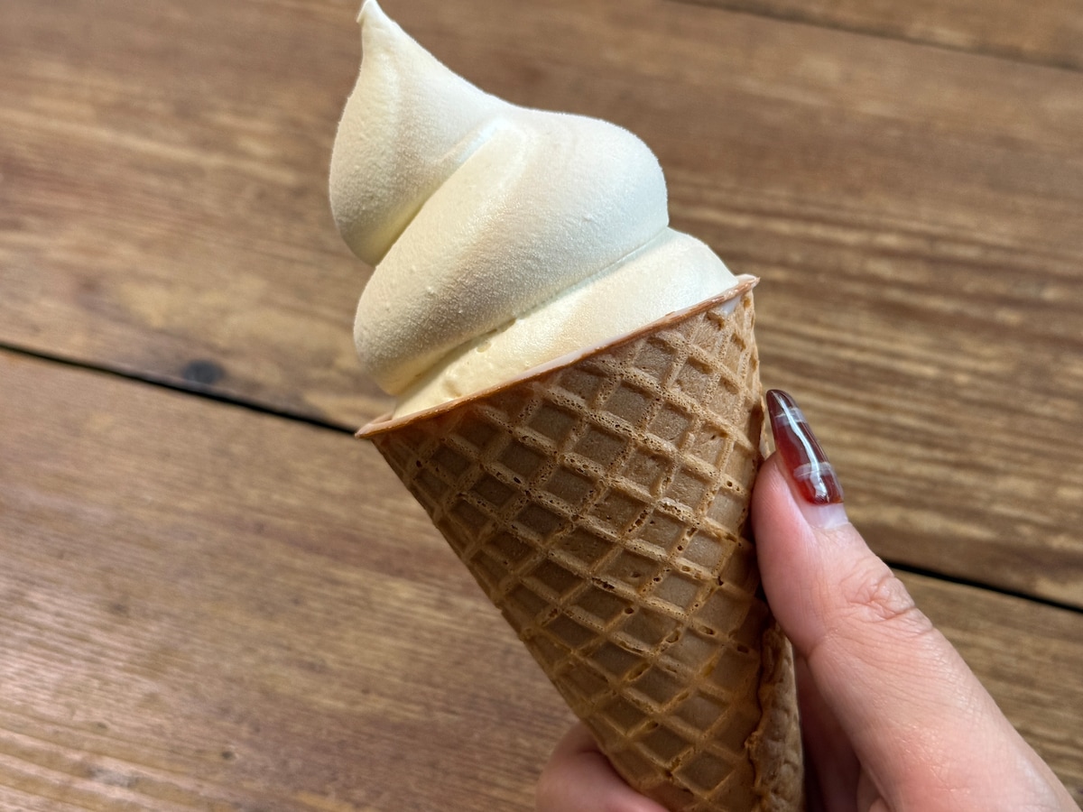 今回はワッフルコーンにも注目。全粒粉を使った香ばしいコーンです。甘いだけのワッフルコーンが増えてきましたが、ソフトクリームの甘さを包み込む名わき役です。コーンも美味しいと嬉しいですよね。