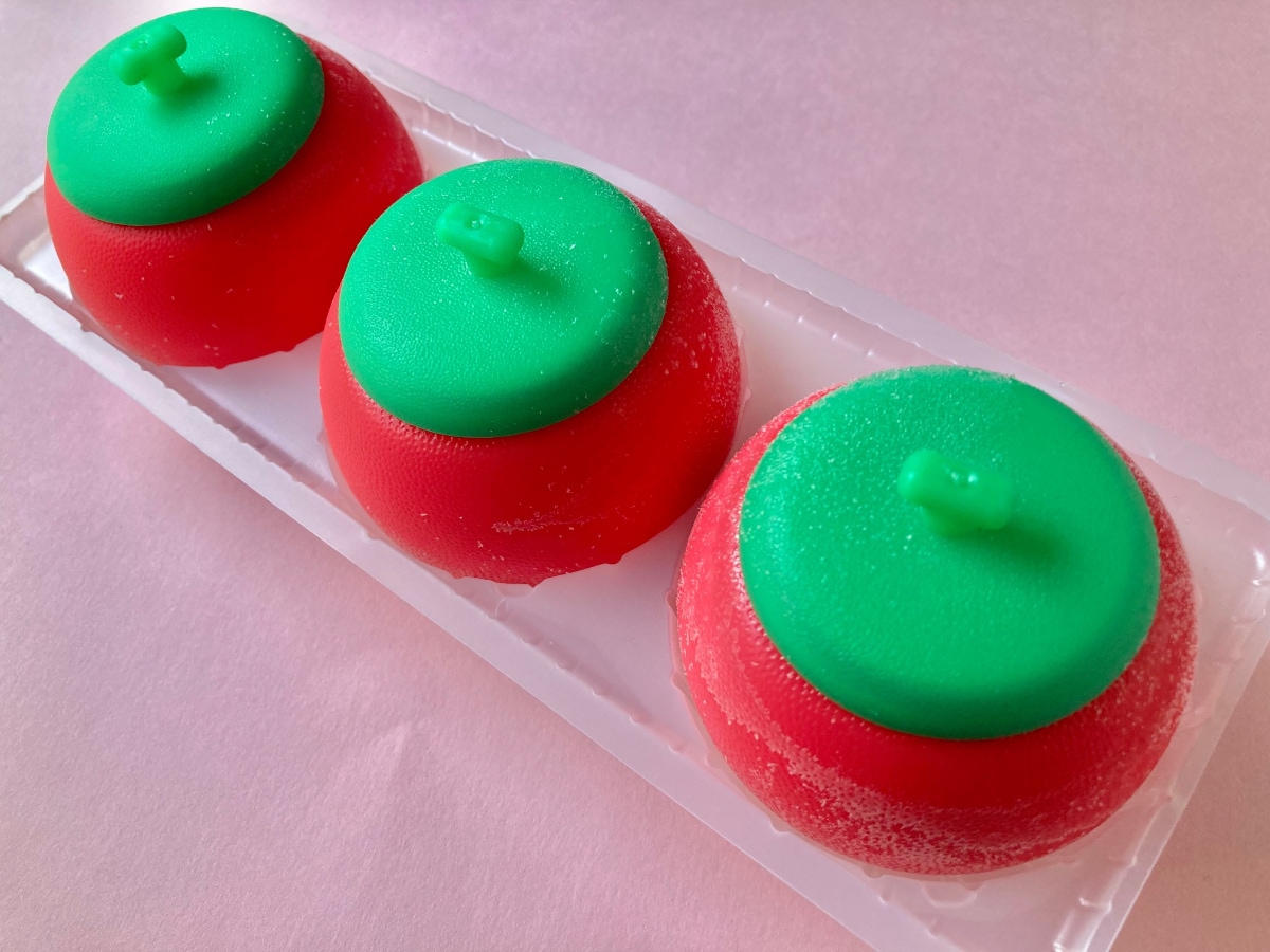 いちごのような容器がどどん!っと3つ並んでいます。ミニサイズなのがまた可愛いですね!