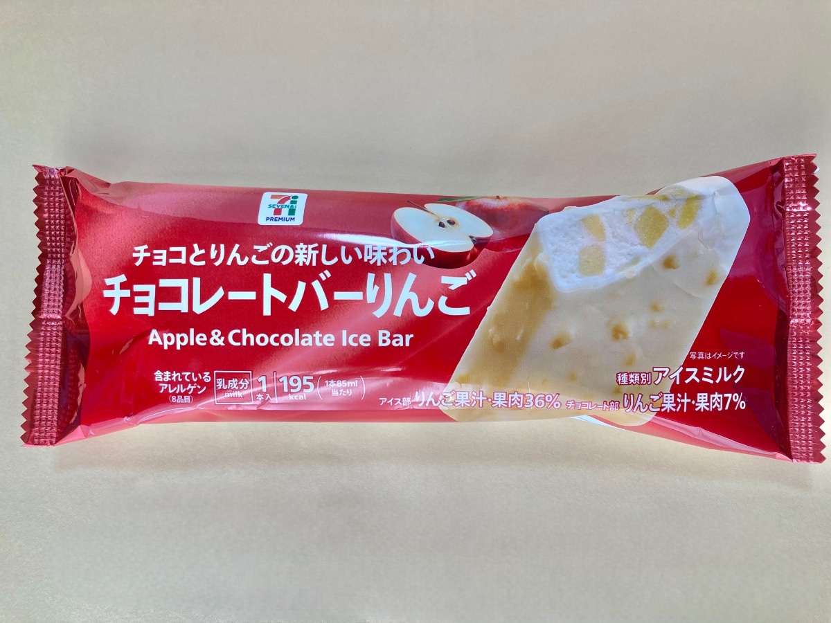 セブンでアイスを購入する際は、「7Pチョコレートバーりんご」をチェックしてみてください。