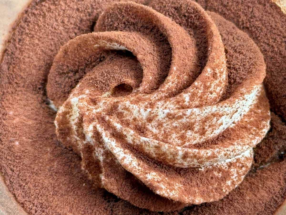 ホイップクリームの上には、これでもか!という量のココアパウダーが贅沢にかかっています。