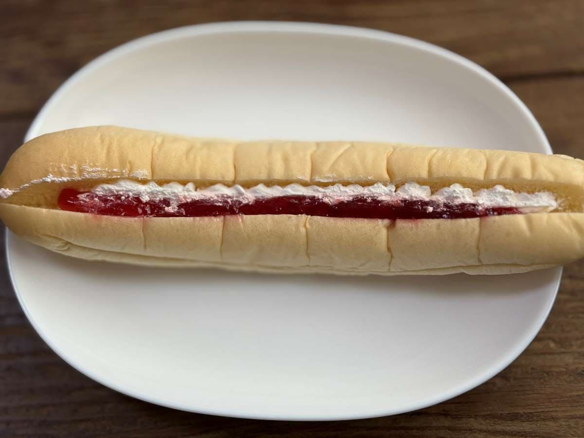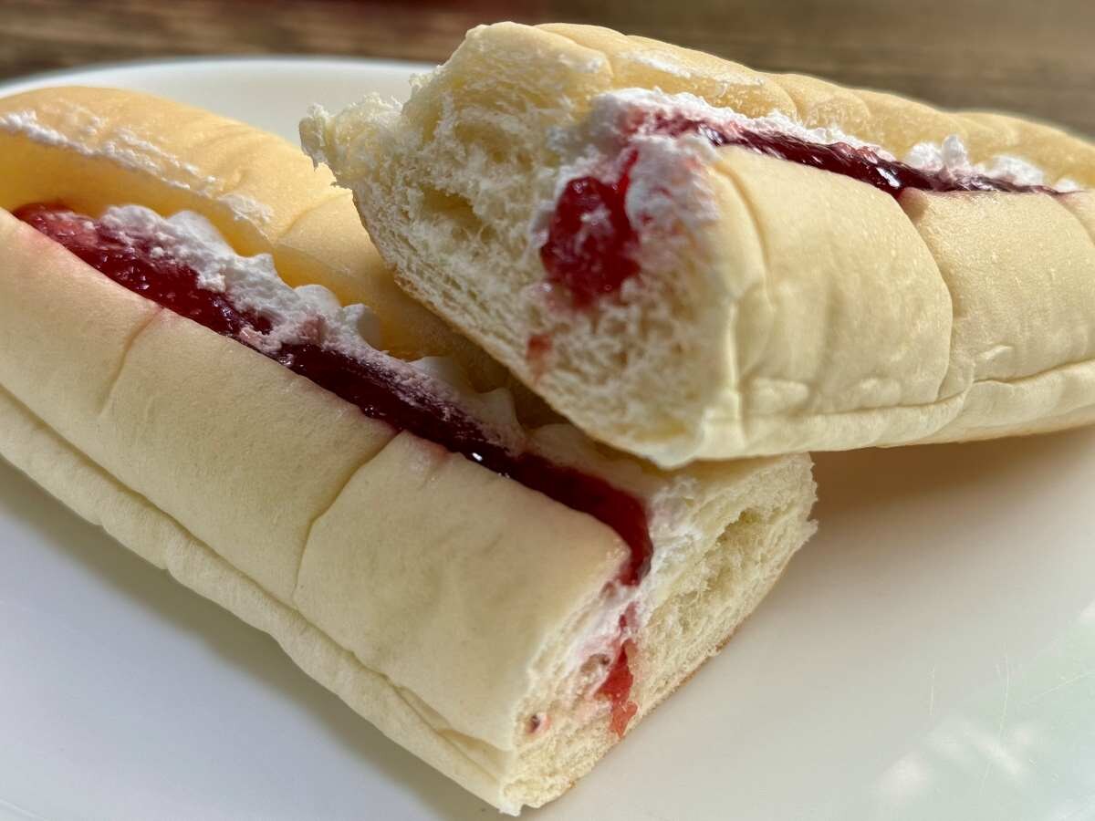 いちごソースとホイップをふんわりとしたパン生地に挟みました。甘みと酸味のバランスも抜群で、パクパクと食べ進めてしまいます。