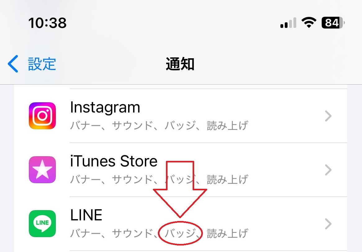 ここにバッジが表示されていない場合は、「通知の設定方法」の手順でバッジの表示を設定しましょう。