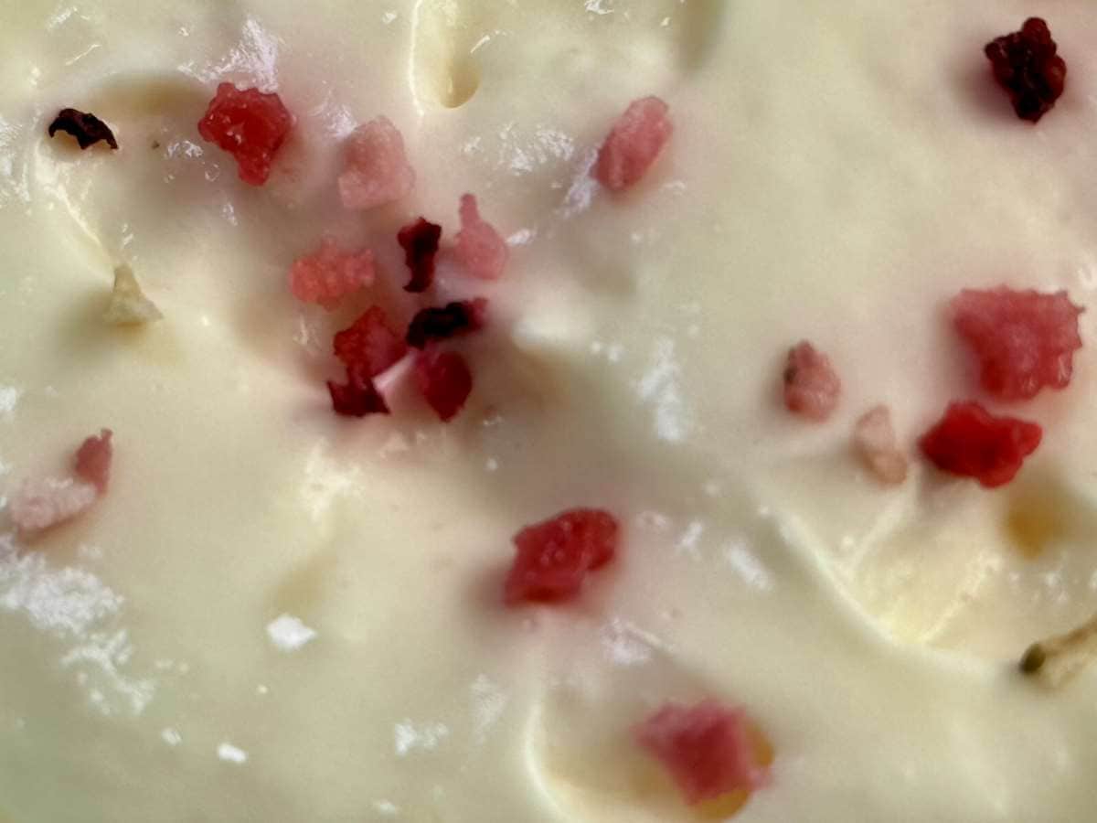 フリーズドライされた苺がちりばめられていて、オシャレです♡