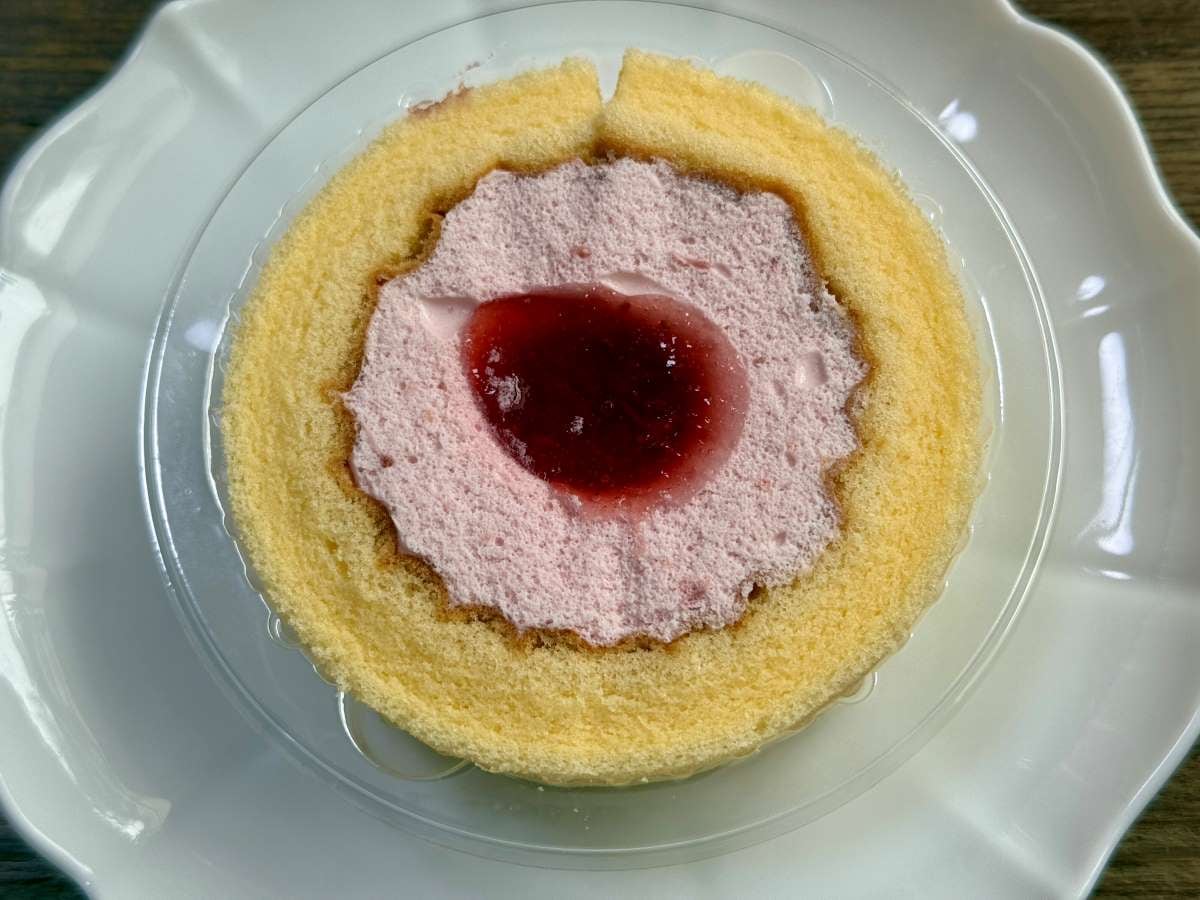 見た目はプレミアムロールケーキの苺バージョンですね!早速開封したら、苺の甘酸っぱい香りがふわっと漂いました。