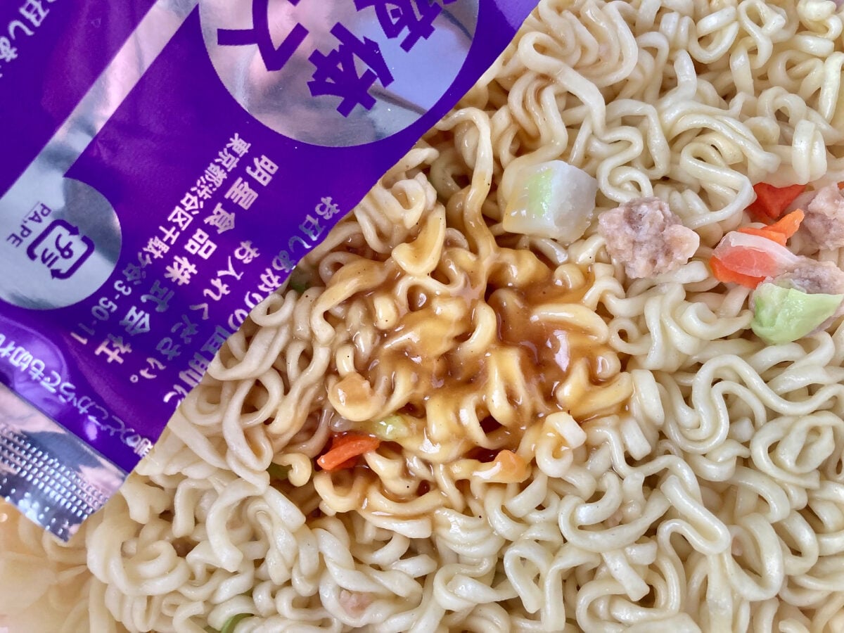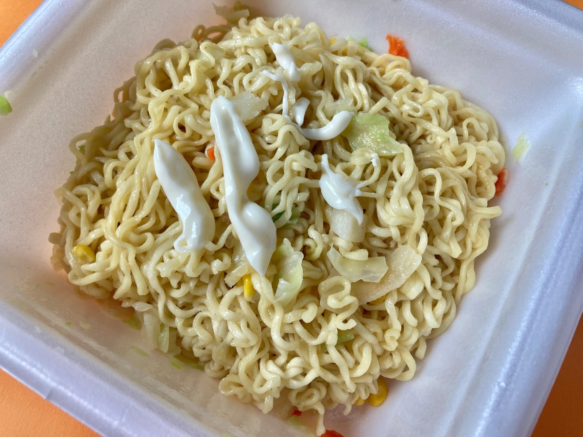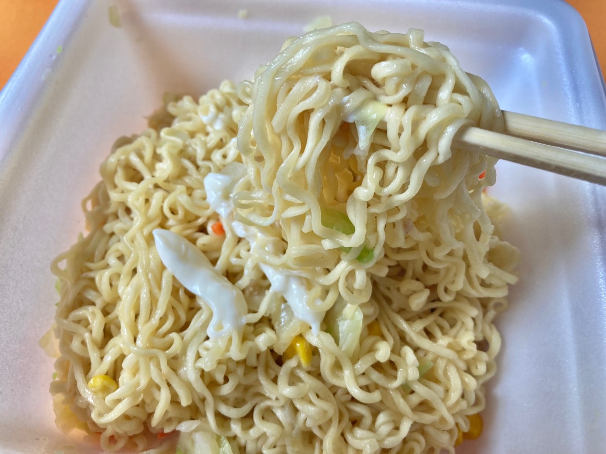 味わいは、スパイス?塩味?が強めで、クリーミーな塩焼きそばの印象。