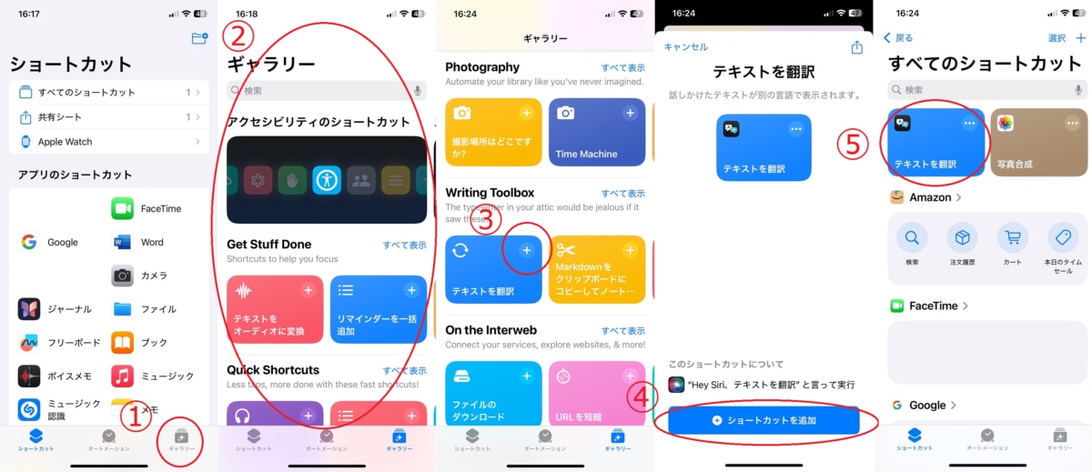 ②ギャラリーから追加したいショートカットを探します