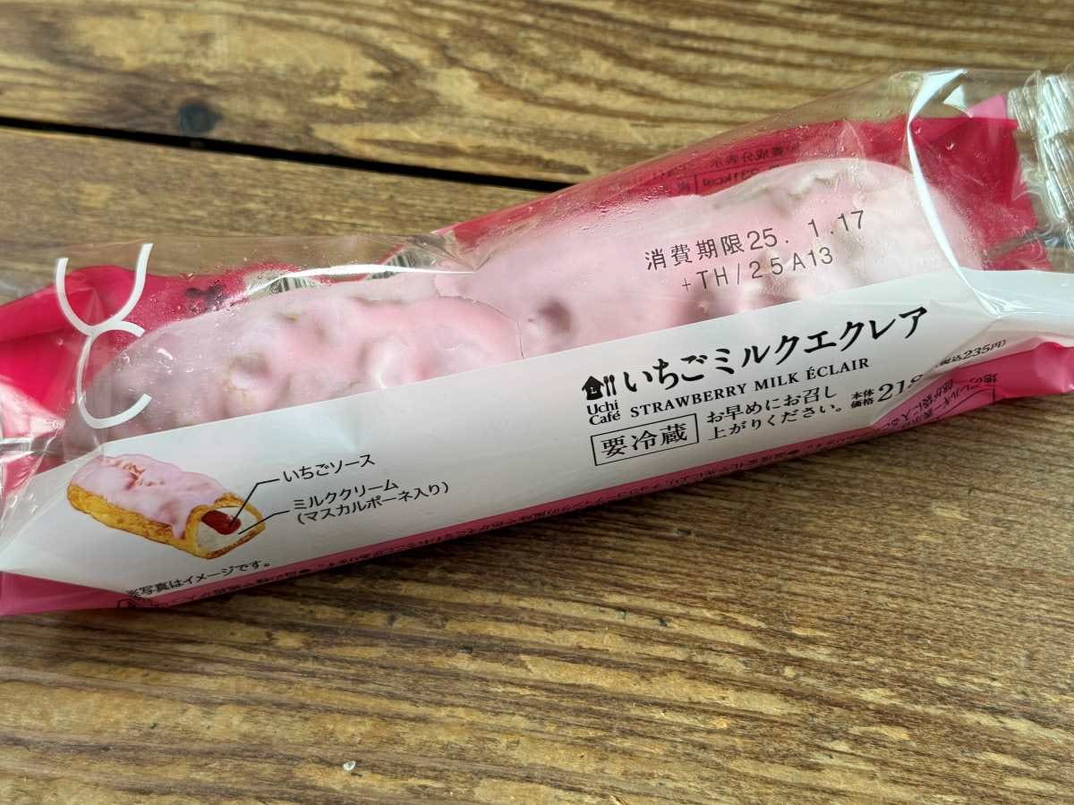 いちごミルクエクレアは、要冷蔵のスイーツコーナーに陳列されていました。