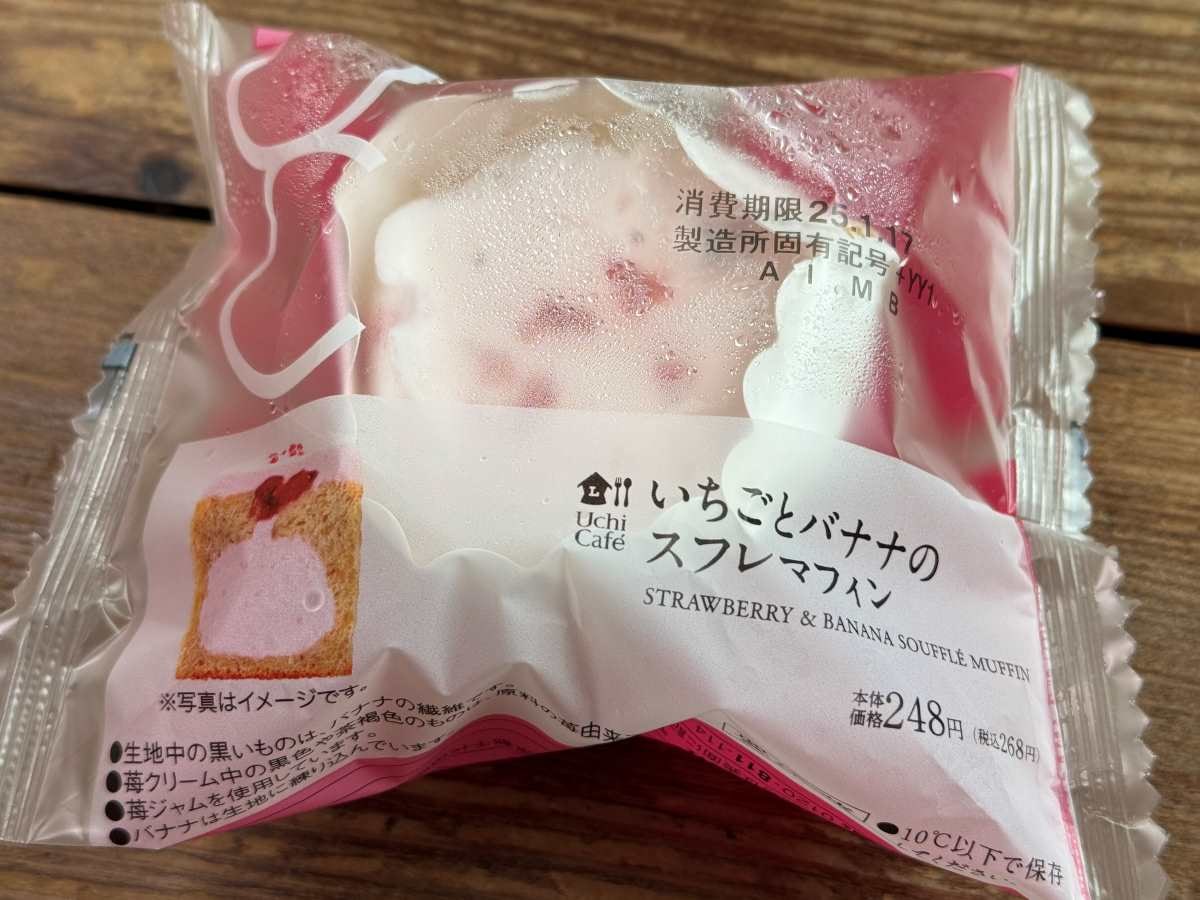 いちごとバナナのスフレマフィンは、要冷蔵のスイーツコーナーに陳列されていました。