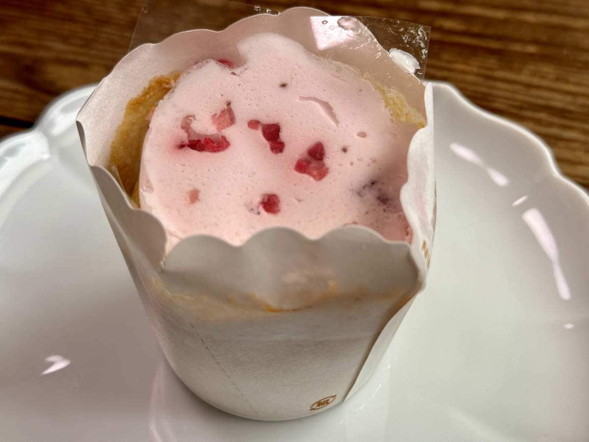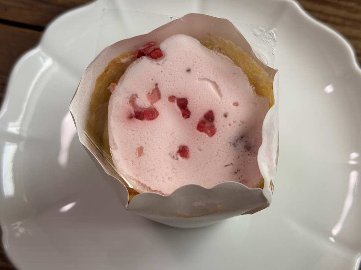 ふわっしゅわっ……ととろけるバナナスフレマフィンに濃厚なストロベリークリームが相性抜群で美味しいです!いちごの風味もかなり強いのですが、それに劣らずバナナの風味もしっかり感じられます。