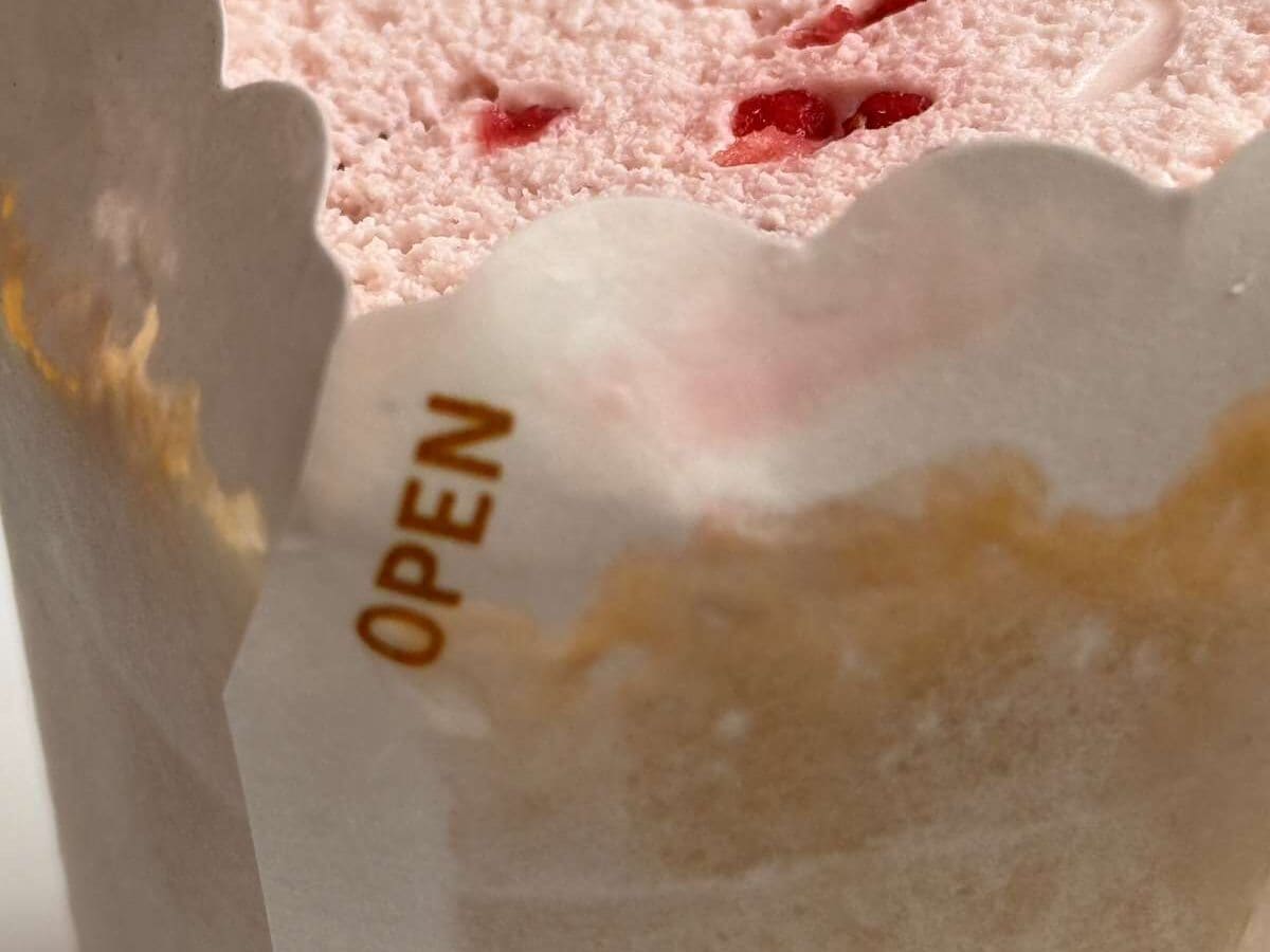 ほうほう!上に乗っているクリームには、砕いたドライストロベリーが沢山ちりばめられています。