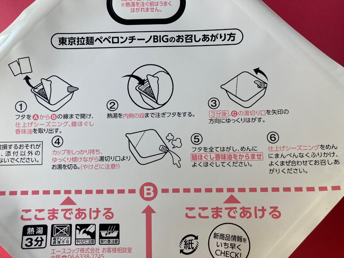 「ペペロンチーノBIG」をさっそく開封。