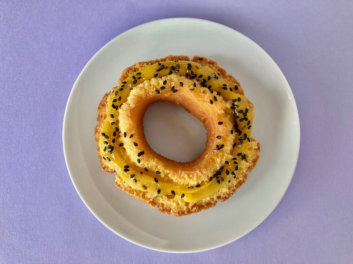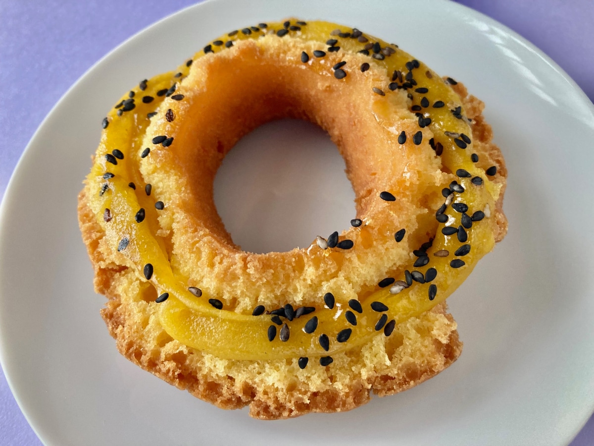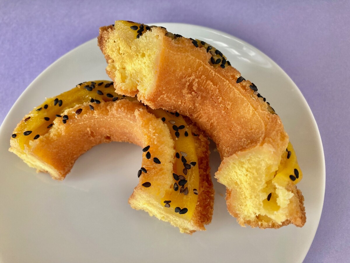 オールドファッションにお芋ペースト、黒ゴマのシンプルな構成。