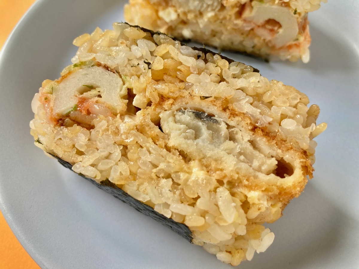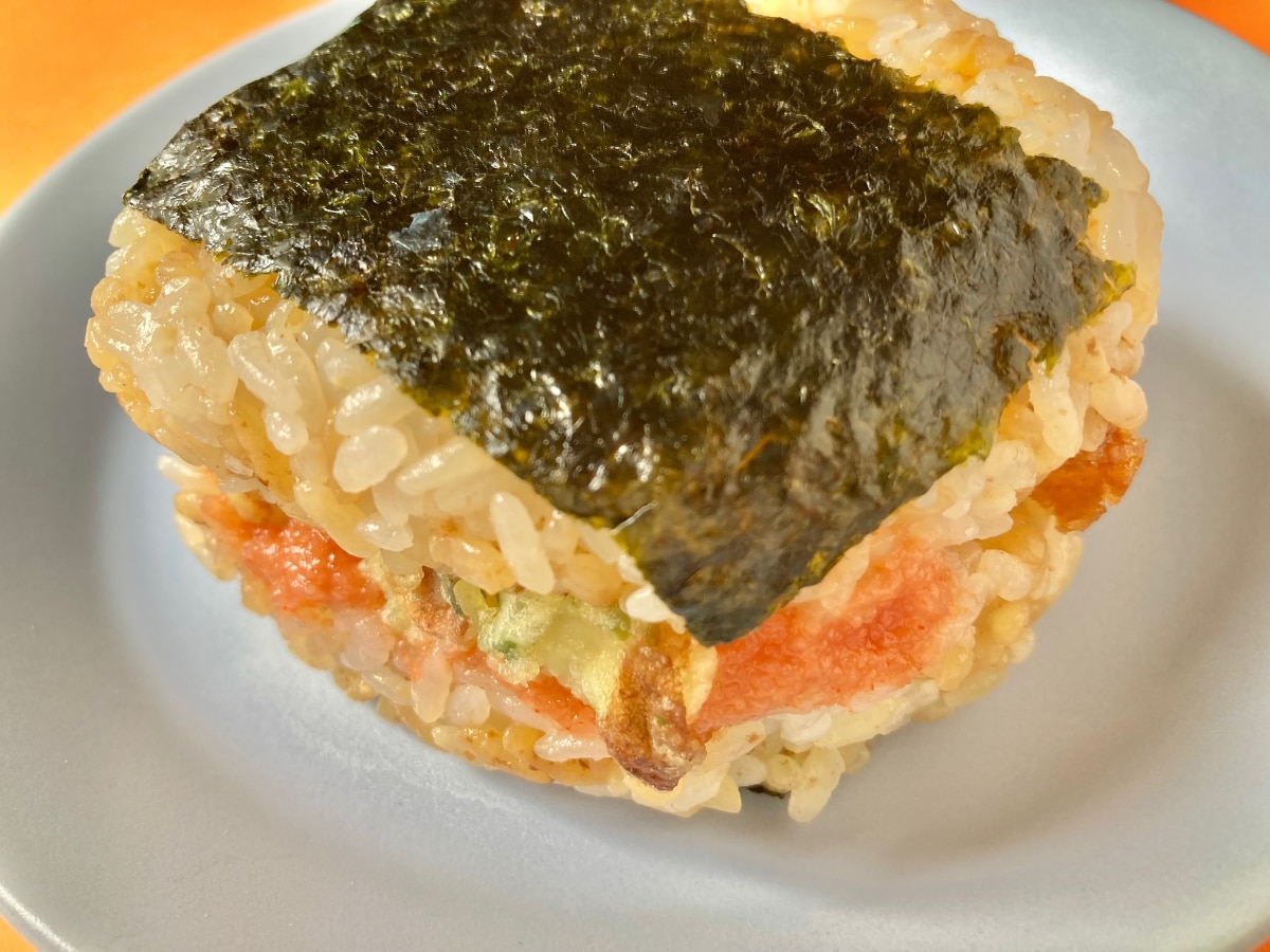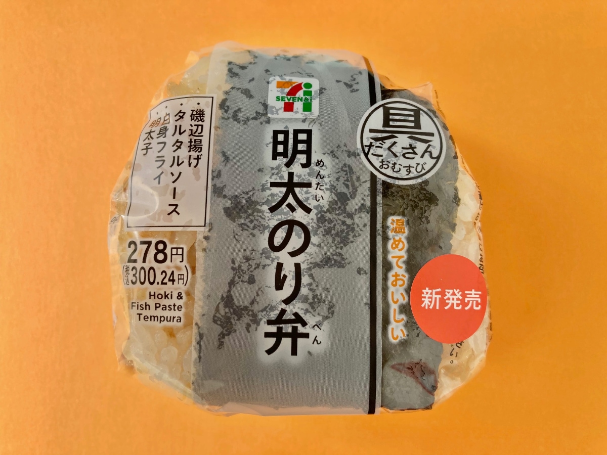 明太子のほか、磯辺揚げや白身のフライ、タルタルソースが入ったおむすび。価格は税込300.24円。