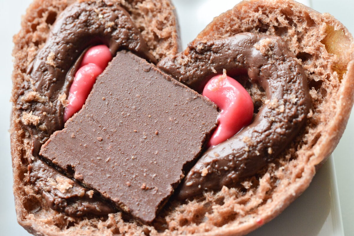 なかには、ガナッシュクリーム、フランボワーズクリーム、ビターチョコがサンドされています。