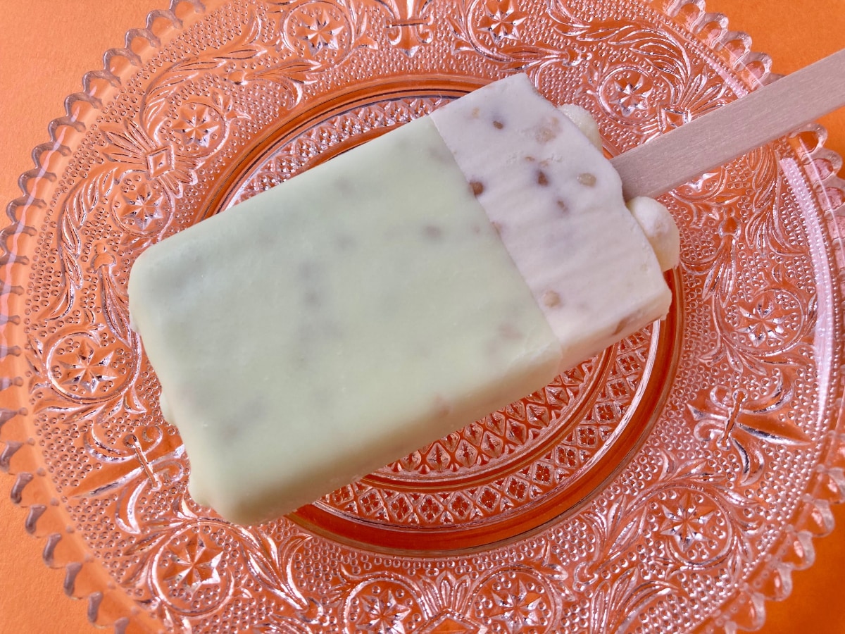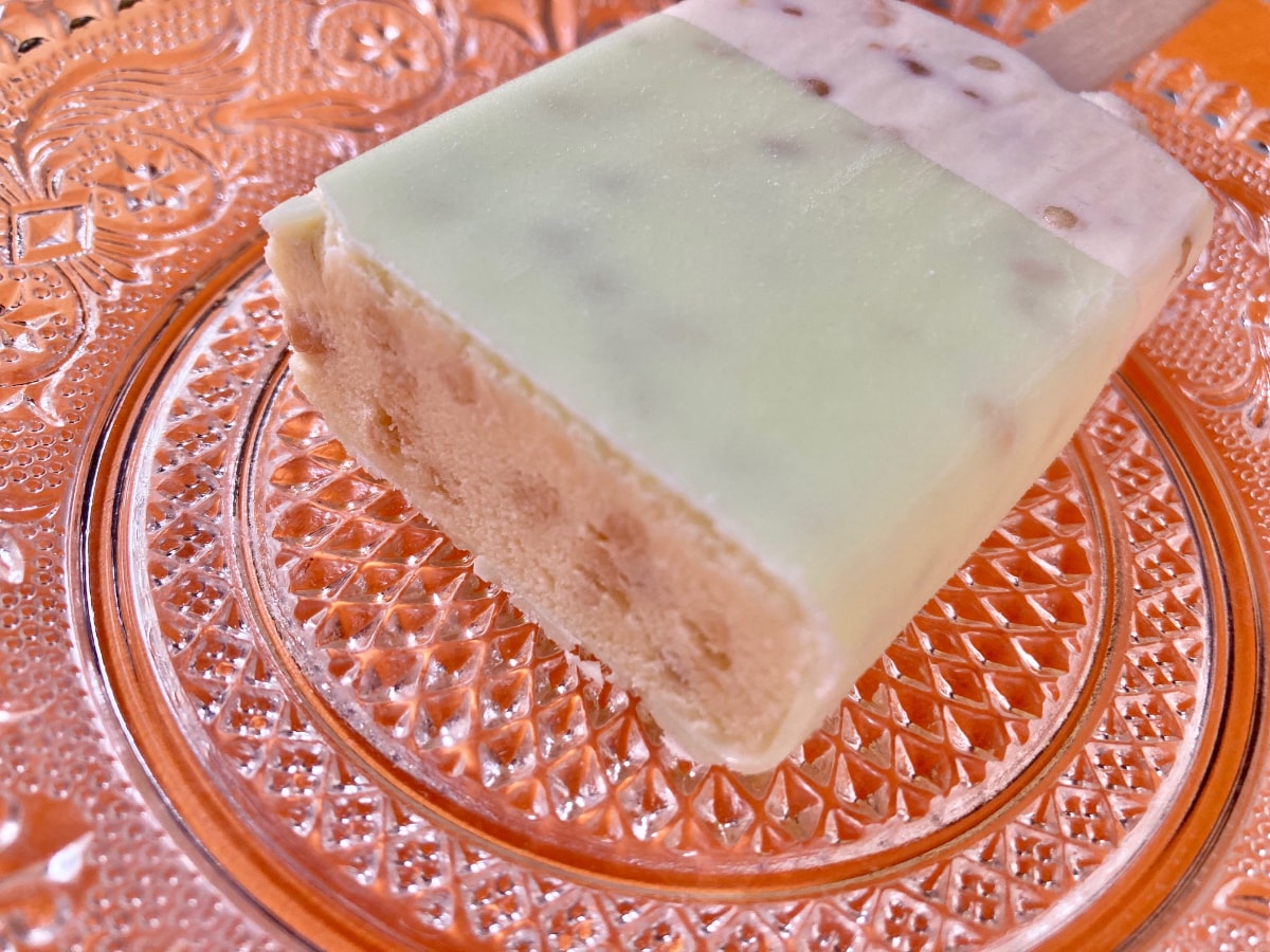 メロンらしいグリーンのコーティングが印象的なアイス。