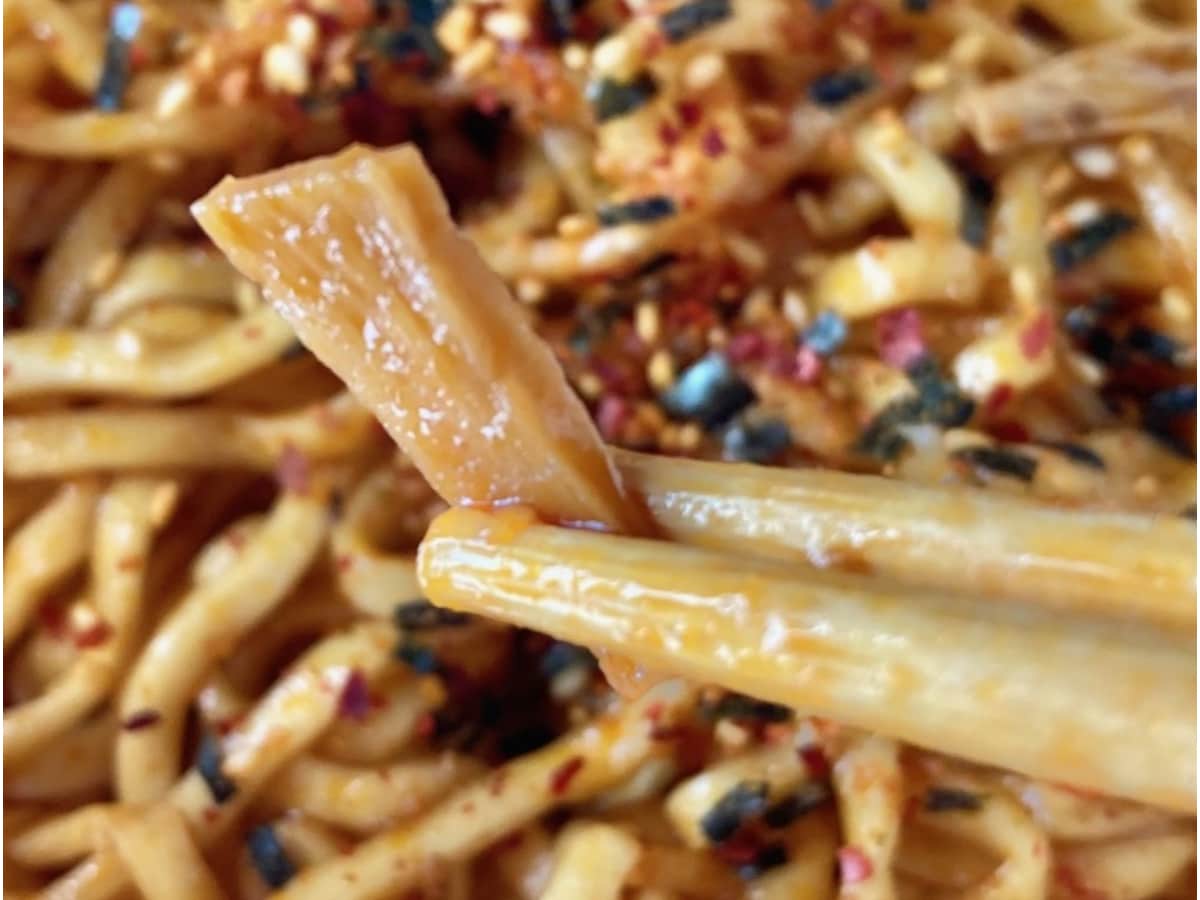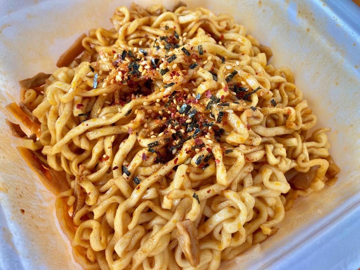 筆者はカップ焼きそばの野菜の「かやく」はなくてもいい派なので、今回のメンマのみの構成はかなり刺さりました。リピート確定です。
