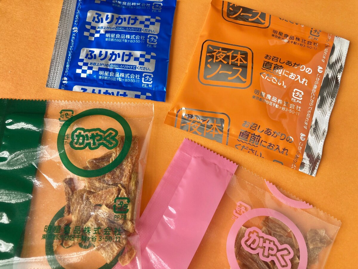 かやく(メンマ)2袋、液体ソース、ふりかけの計4袋が入っていました