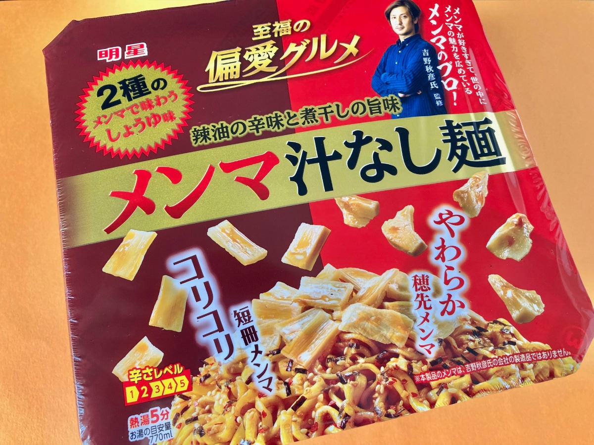1月20日(月)より、明星から「至福の偏愛グルメ メンマ汁なし麺」が発売されました。今回は近所のスーパーで購入。