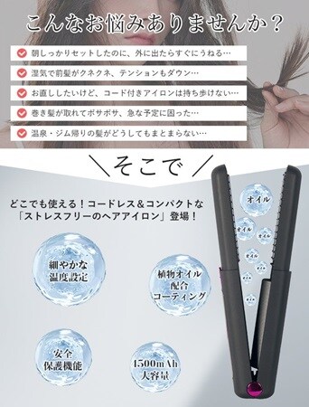 L&Lライブリーライフは、コードレス仕様で持ち運びに便利、かつ髪にやさしい植物オイルコーティングを施した最新モデル「2WAYコードレス ヘアアイロン」3,480円を9月10日(水)より販売開始した。